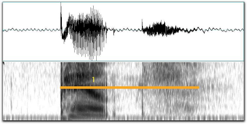 A view of a production of the monosyllabic pants, displayed in Praat, with syllabification into 1 syllable marked.