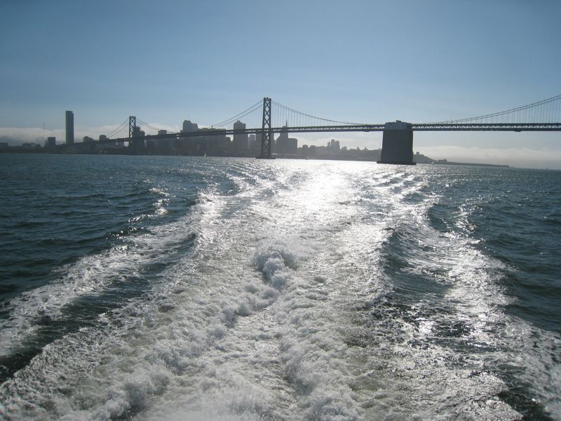 This is taken from a ferry heading across the San Francisco Bay towards Oakland in the late afternoon. I took this photo (and this ferry ride) in June of 2008.