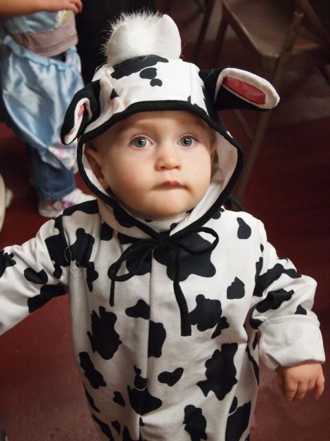 (Theo may get to be a dalmatian on Saturday, but I haven’t gotten his costume together. I had this here cow on hand.)