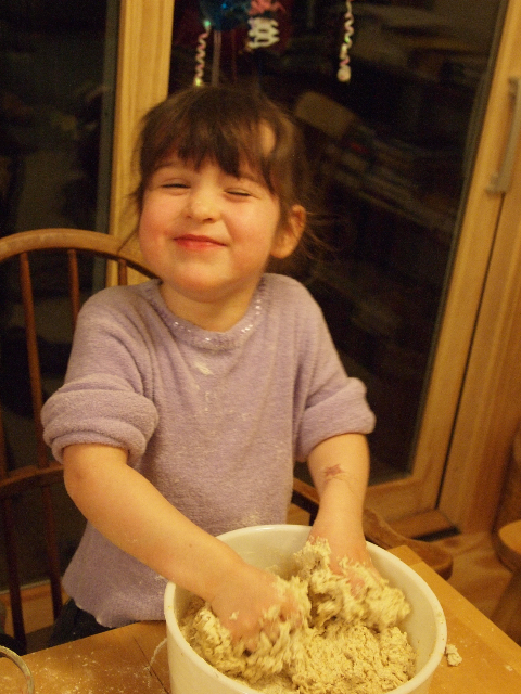 Phoebe looks to be enjoying it thoroughly. Not surprising. My mother always got me to knead the bread dough as soon as I was big enough to give it some push, and I started the granddaughter on the same path when she was four.