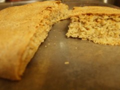 We had the “boule” (or “discus”) for dinner. The loaf bread, also quite dense, worked really well for slicing thin to make toast.