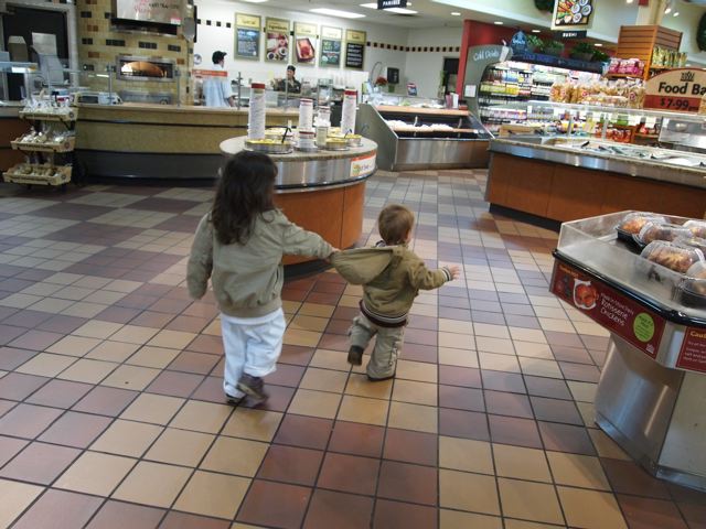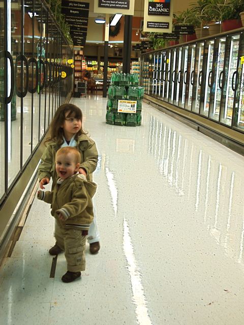 These last ones are from grocery shopping tonight. Being a Tuesday evening, it was pretty deserted in Whole Foods, so we let Theo walk around a bit. He had blast. Phoebe went with him and looked after him. (She did a great job except for the couple of times when she got distracted and knocked him over or and pulled him down by his jacket.) I could barely stand the cuteness of it.