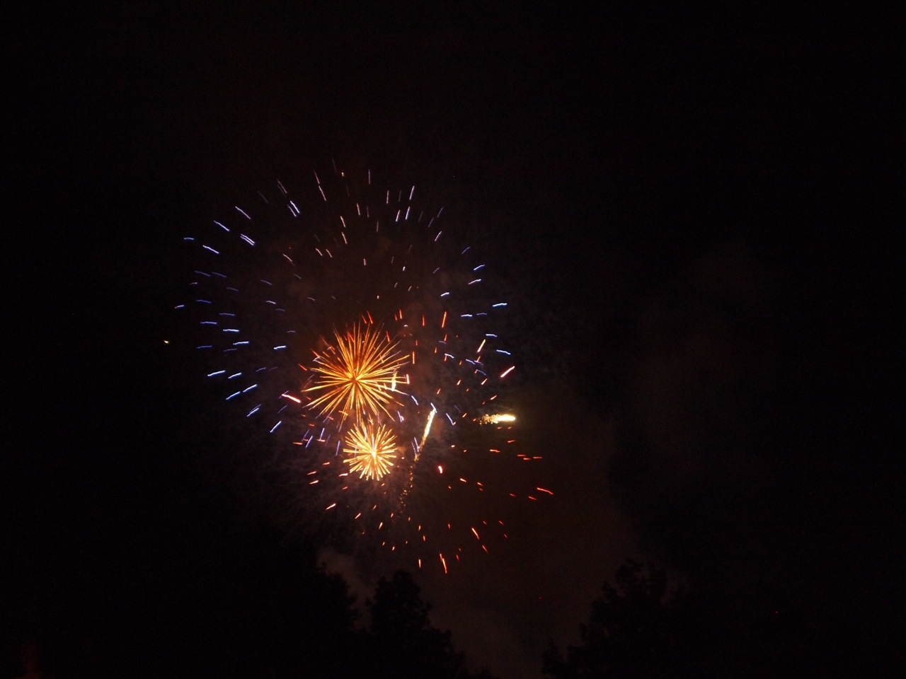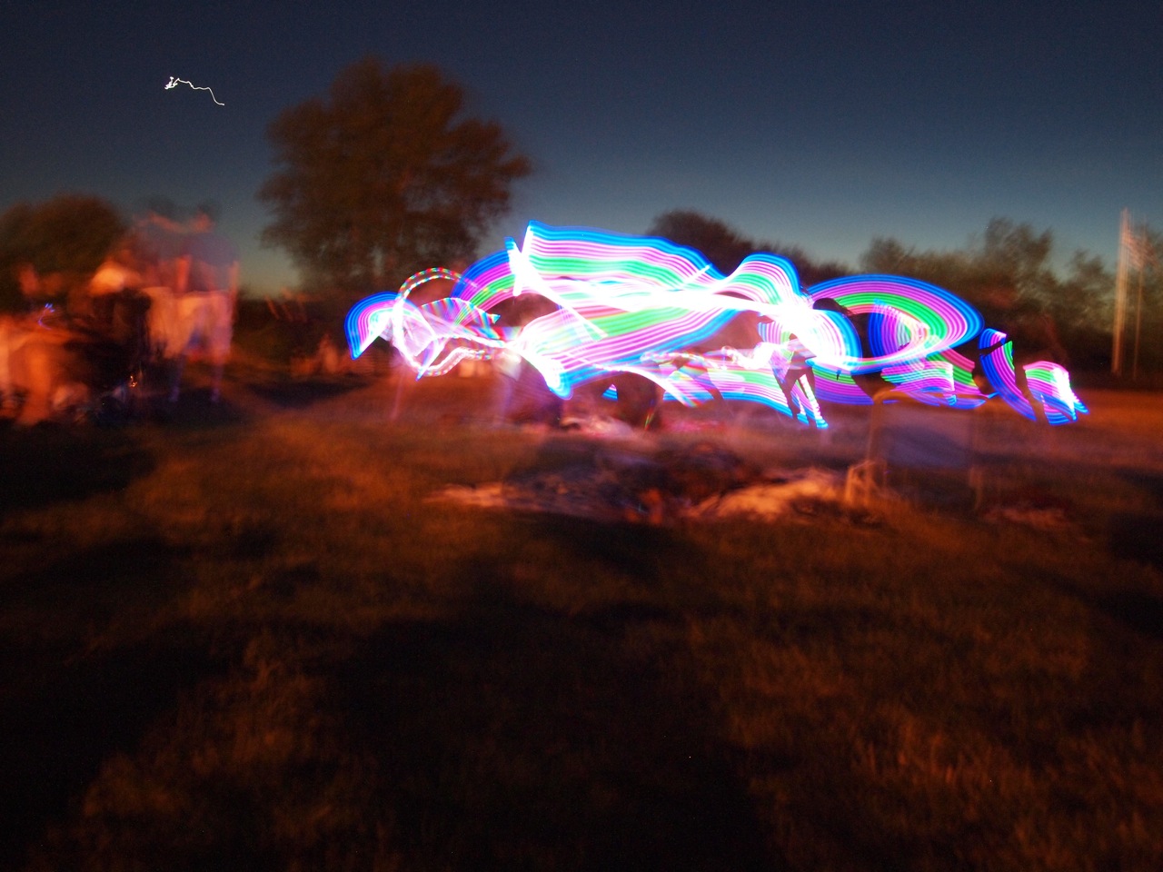 On Saturday night, we went to see a fireworks display at a nearby town. It was a perfect night to be outside, with clear skies and a warm breeze to keep the bugs (mostly) at bay. Kids were running around having fun playing with various light toys, and I had fun playing with slow shutter speeds.