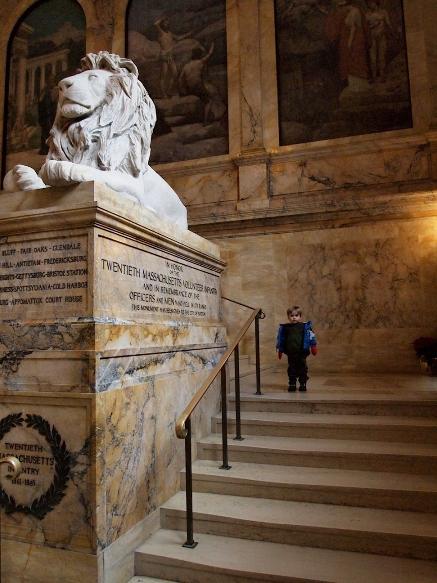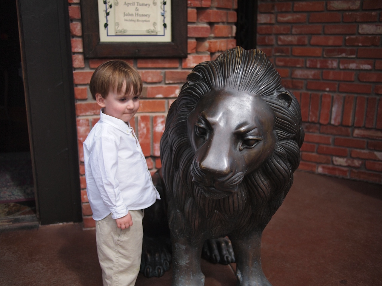 1. That is an excellent collection of lion photos (sort of a visual ThThTh, though it’s not Thursday). I especially like that Theo is featured in several of them, which gives a sense of the entirely different scales some of these lions are on. Theo looks so so tiny in that first one! and so big compared to the stuffed lion at the end!
