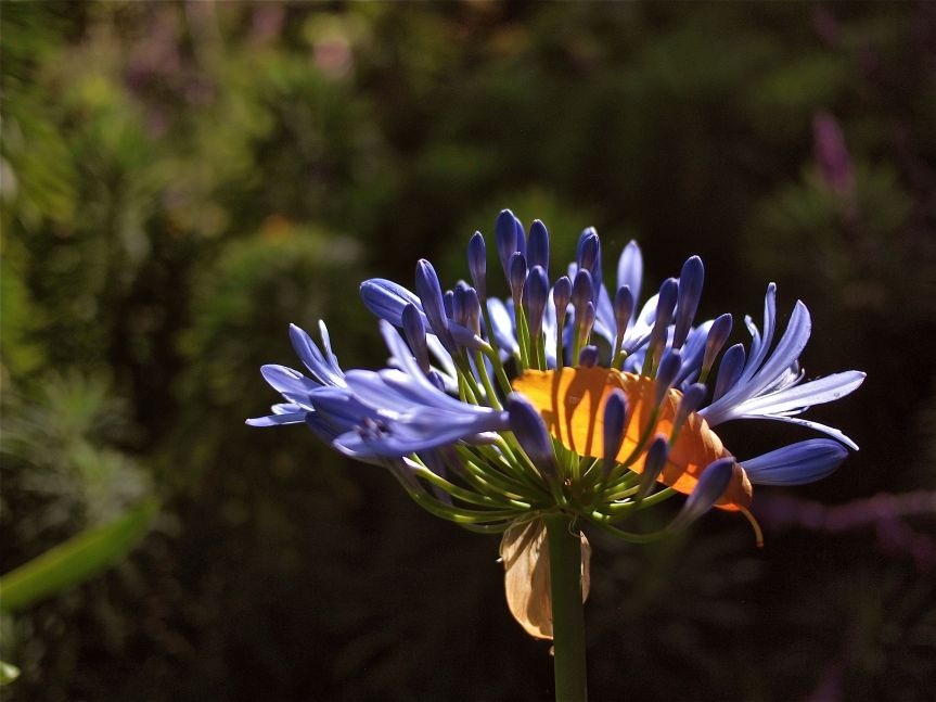 Late this morning, I went for a stroll with my mother in the gardens of her apartment complex. The sun was hitting this flower just right to make its leafy interloper glow. (I do wish I’d done a better job with the focus. I may try to go back again tomorrow at the same time of day, but I doubt I could find the light just so again.)