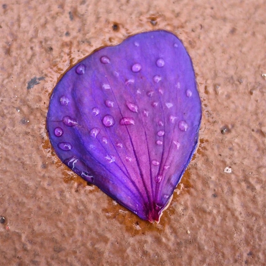I saw this water-beaded purple petal on my sister’s front steps this morning. It reminds me a bit of the purple heart beads that kids get from Beads of Courage at the end of treatment.
