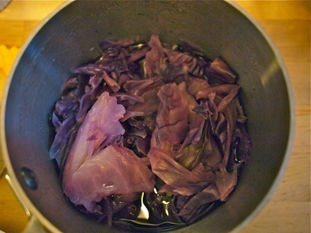 And, no, I absolutely, emphatically did *not* eat the cabbage. For one thing, I think boiled cabbage is gross. I like to eat cabbage, but only when it is still crunchy. This stuff was soggy, since I intentionally boiled the crap out of it. Also, in the end, I also added baking soda to the pan of cabbage. It turned this bright, toxic-looking turquoise. Certainly not something to be eaten. (I do regret that I didn’t get a picture of that, though.)