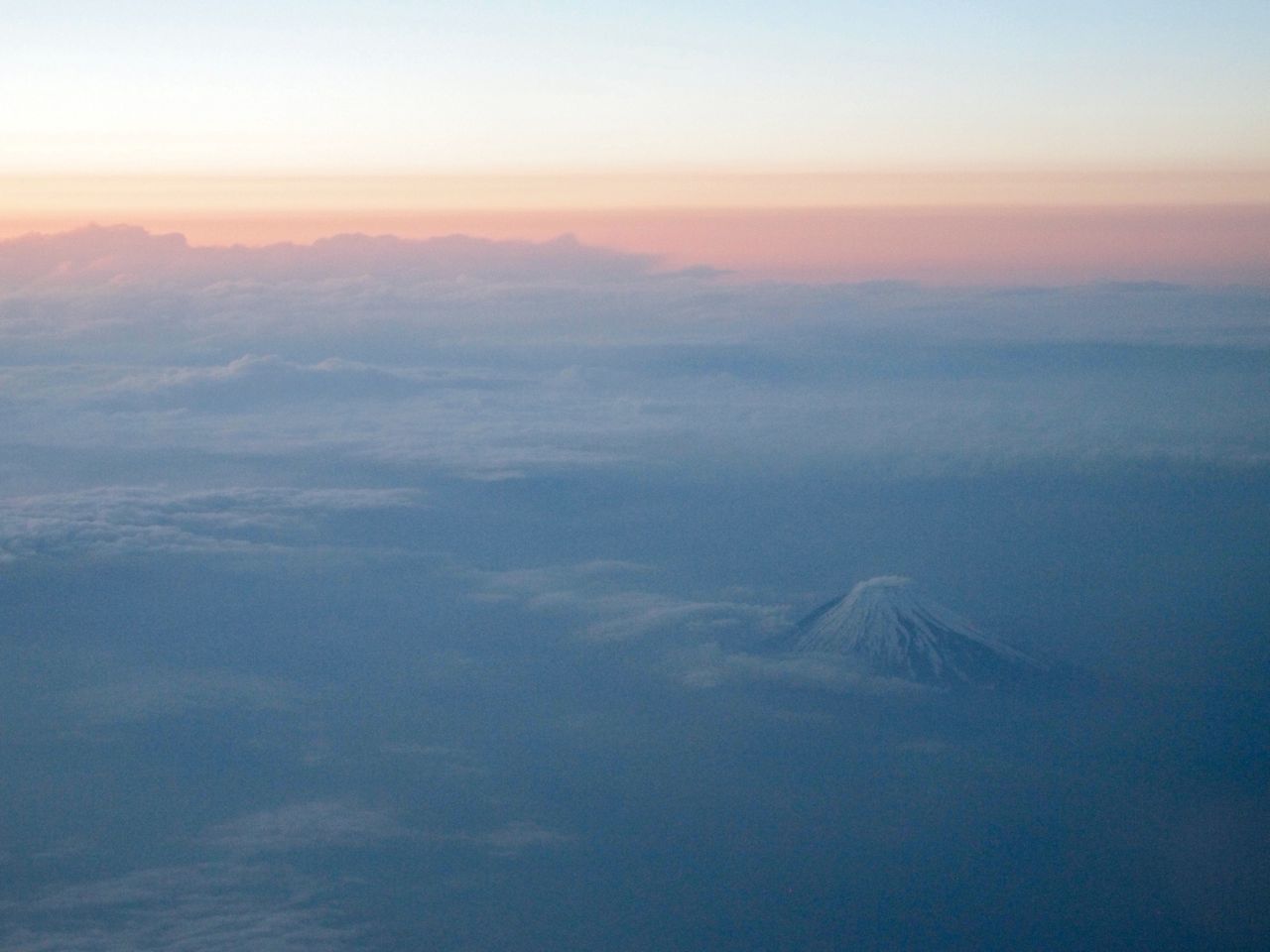 Since I don’t know where to start in on my photos, here is one I took from the plane during my flight back. Once again, my choice of window seat paid off. I happened to glance out the window about an hour or two into the flight, and saw a rather dramatic looking mountain peeking through the clouds. I grabbed for my camera, and managed to snap a few shots before the mountain left my view. I probably would have gotten a clearer shot with my telephoto lens, but fortunately I correctly assessed that I wouldn’t have had time to dig it out from my bag and change lenses in time. Once the mountain was behind me, I looked at the live flight map on the individual monitor to see where we were: roughly over Tokyo. Further investigations once I got home confirmed my suspicions: this was Mount Fuji.