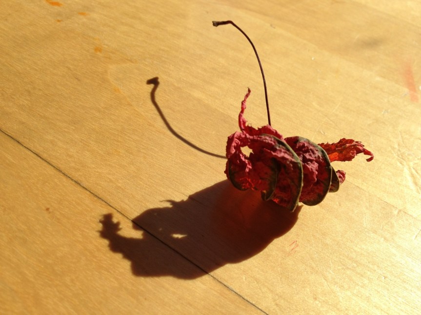 1. ooooh! It was beautiful when it was fresh, and it’s fascinating all curled up and contorted. It’s still very vividly colored! And, of course, well-photographed!