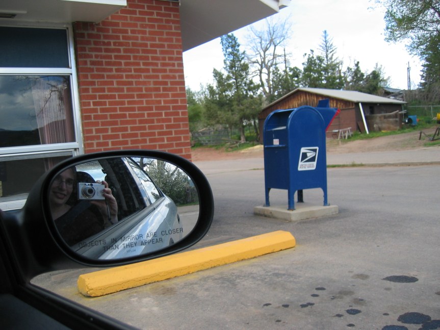 I suppose I could just run outside and snap a photo of our home mailbox, but it’s really not a very interesting one. Instead, I dug out this photo of a standard US mailbox outside the post office in Beulah, Colorado, that I took in 2005. (Perhaps I should disambiguate. I took the photo in 2005. Not the mailbox. I did not take the mailbox in 2005. It would not have fit in my luggage.) Okay, the photo is still not all that interesting. However, it is fun to see what standard mailboxes look like around the world. At this point, I believe that the other participants of friday foto finder are in Europe & Australia.