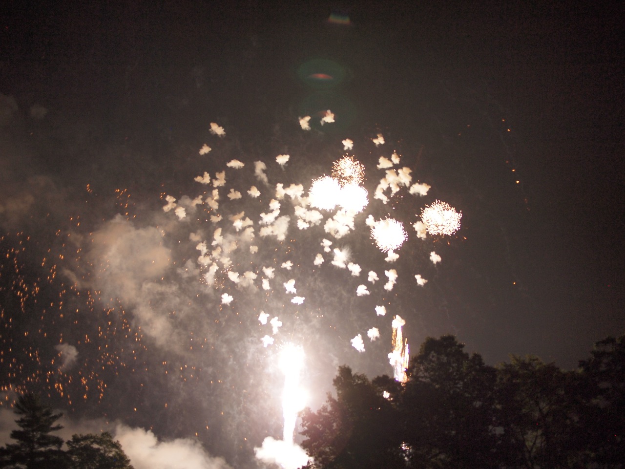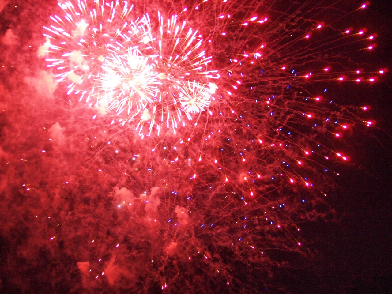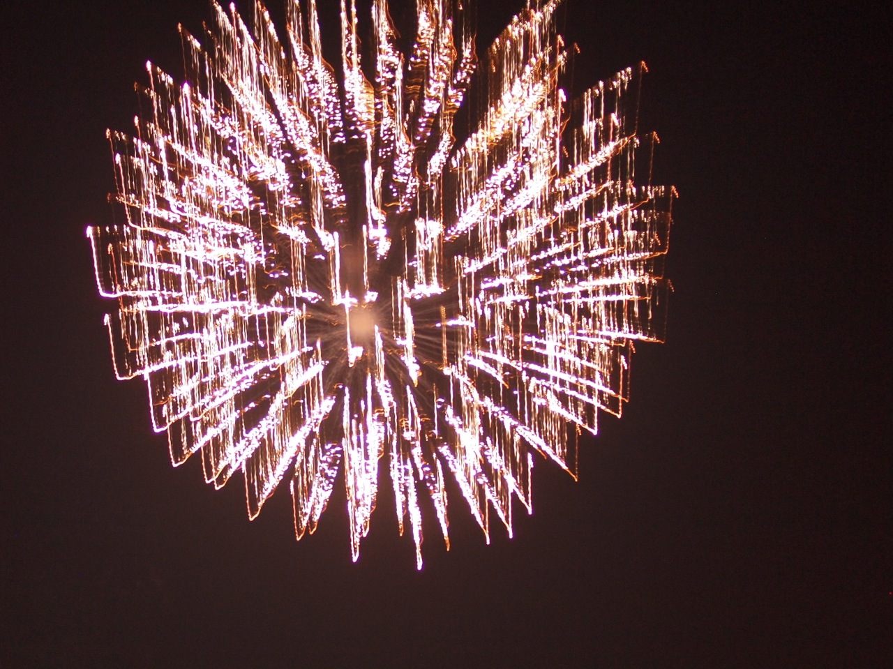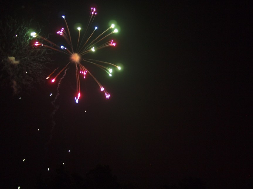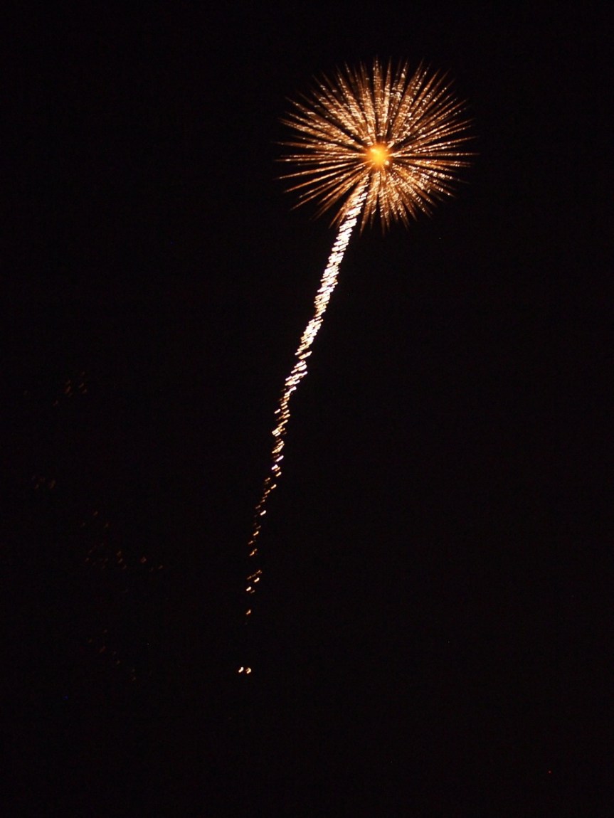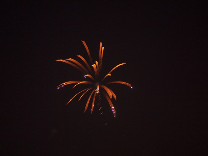 As best I can tell, it helps to have a camera that you can set to full manual mode: you’ll want to set the aperture, shutter speed and ISO levels, and also not try to rely on auto focus. (Things typically move too fast with fireworks for my camera to find a focus on its own.) I played around quite a bit with the settings, and took probably well over a hundred photos, to get some shots that I liked. (Two of the great things about digital photography are the cheapness of taking so many exposures, and the near-live feedback about how your photos have worked out, letting you make adjustments accordingly.)