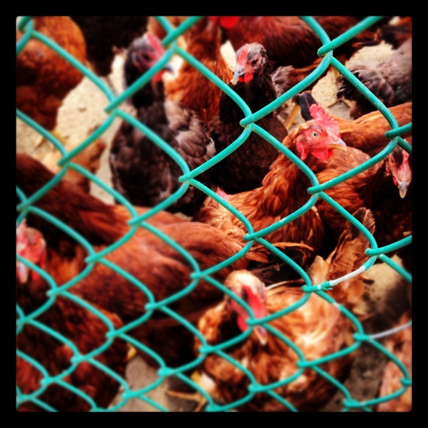 Sally stole my comment. I like all three of these too! The first has a serious urban mood. The second features the clever capture of the hen’s head framed by the fence as well as the intriguing color play, and the third is urban and hopeful.