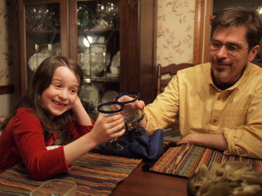 And here are Phoebe and John, toasting with the sparkling apple cider.