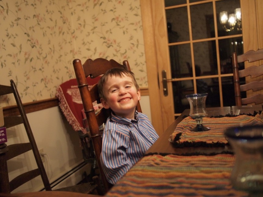 In answer to the question of my previous post, here is Theo with his striped shirt. (Though in this photo he is not holding the glass.) This photo was taken by Phoebe, by the way.