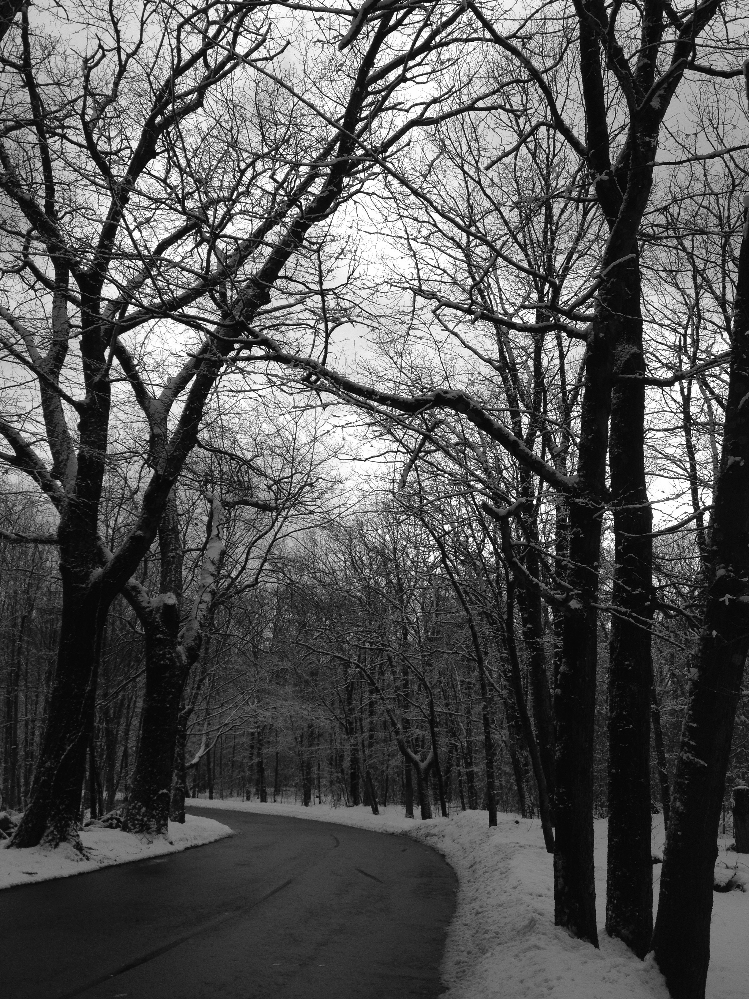 And here is one last photo for the month. For Annette, who finds herself taking too many photos of bare trees. (Though they are lovely bare tree photos.) Look! I got you another photo of bare trees. And for Sarah, whose words about the many grays of February brought a bit of light into the end of my month. (You see? This photo only looks slightly different in black and white.)