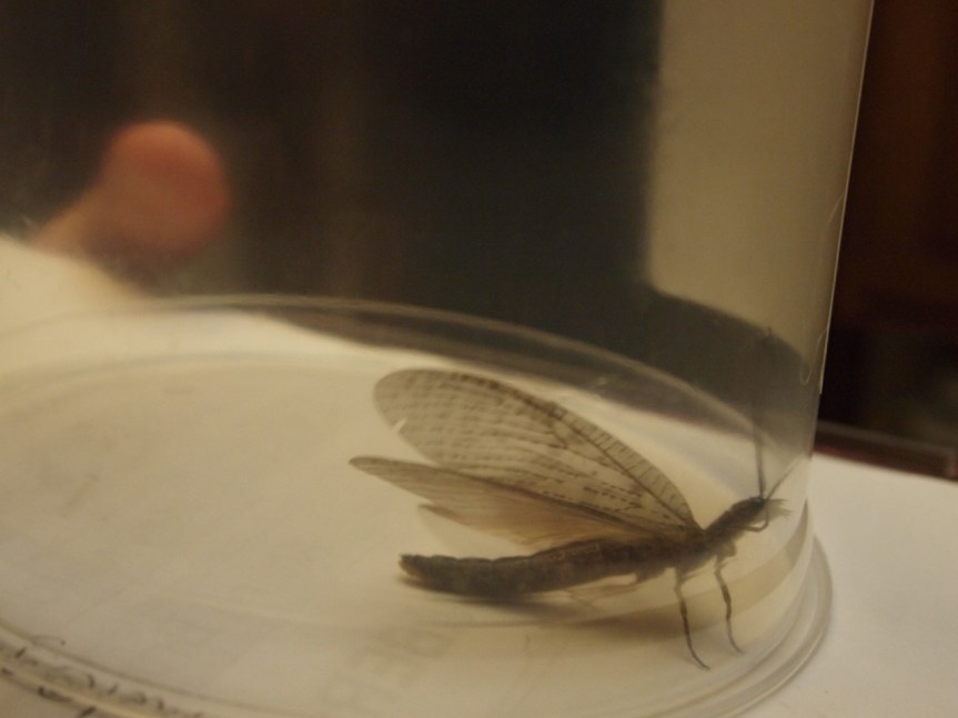 I wondered if it might be a large mayfly, (order ephemeroptera, among the more poetically named orders, reflecting the ephemeral nature of their adults’ lives). However, I think it is too large to be one. Additionally, it is missing the long cerci that mayflies have.