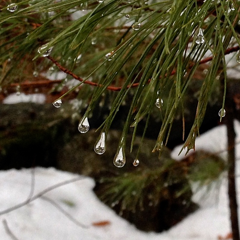 I didn’t get any photos of the rain today, but here is a photo from March. I liked the way the drips lined themselves up. (And now I like the way we no longer have snow on the ground. We were away for the weekend, and the last of the snow had departed by the time we returned.)