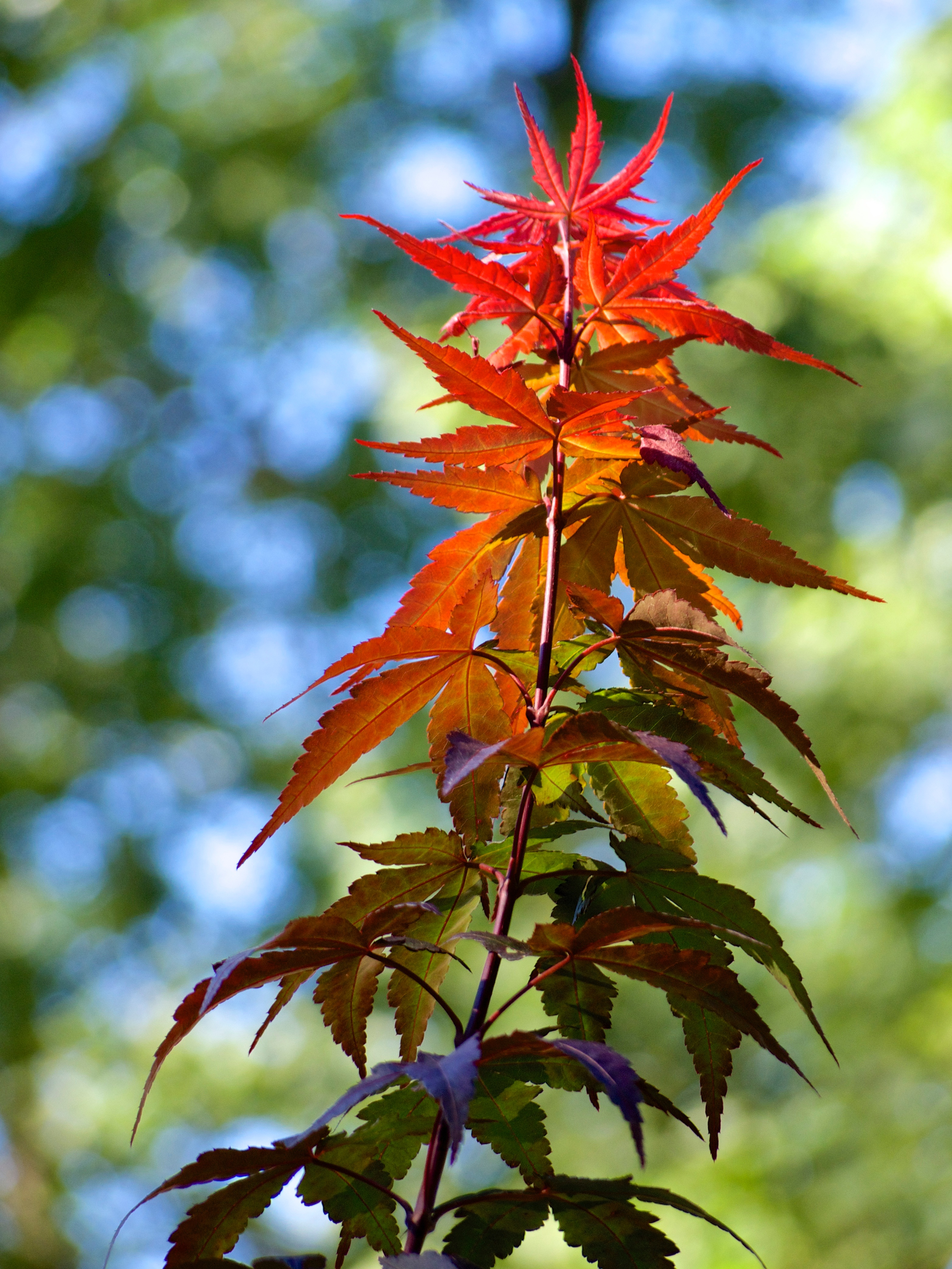 While out and about today, the late afternoon sun lit up this towering stray branch of a young Japanese maple.