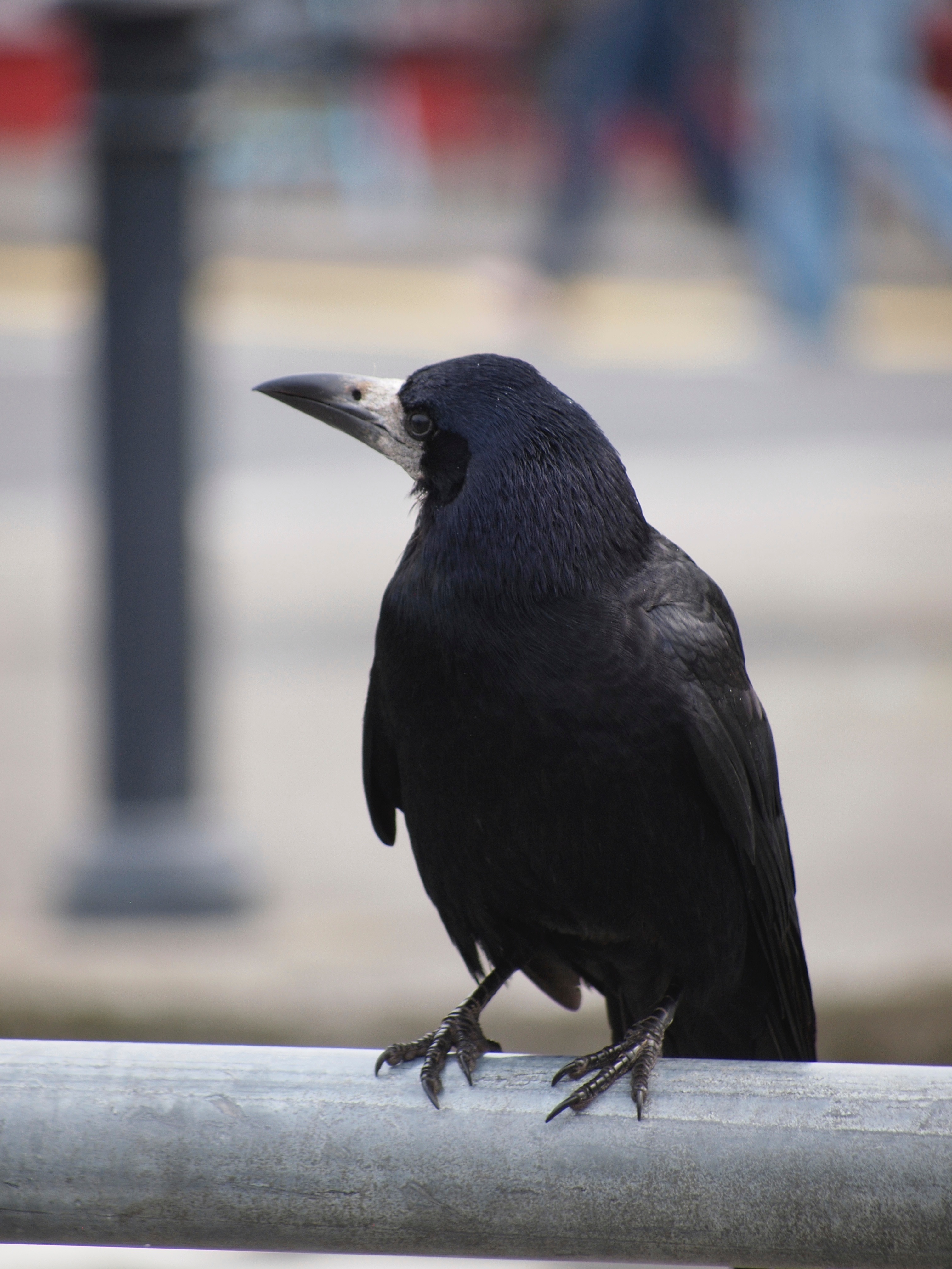 I was not entirely sure that this bird was a rook, and not some other type of crow, but according to the Wiki entry for rook, he seems to fit the bill: