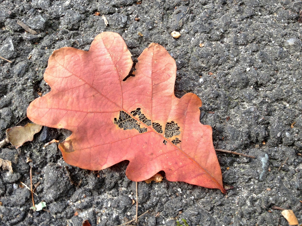 The holes in this oak leaf look quite lacy.