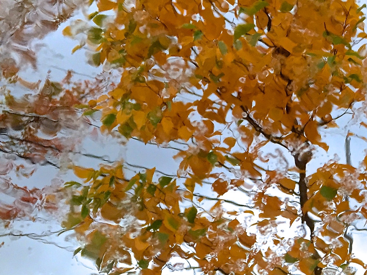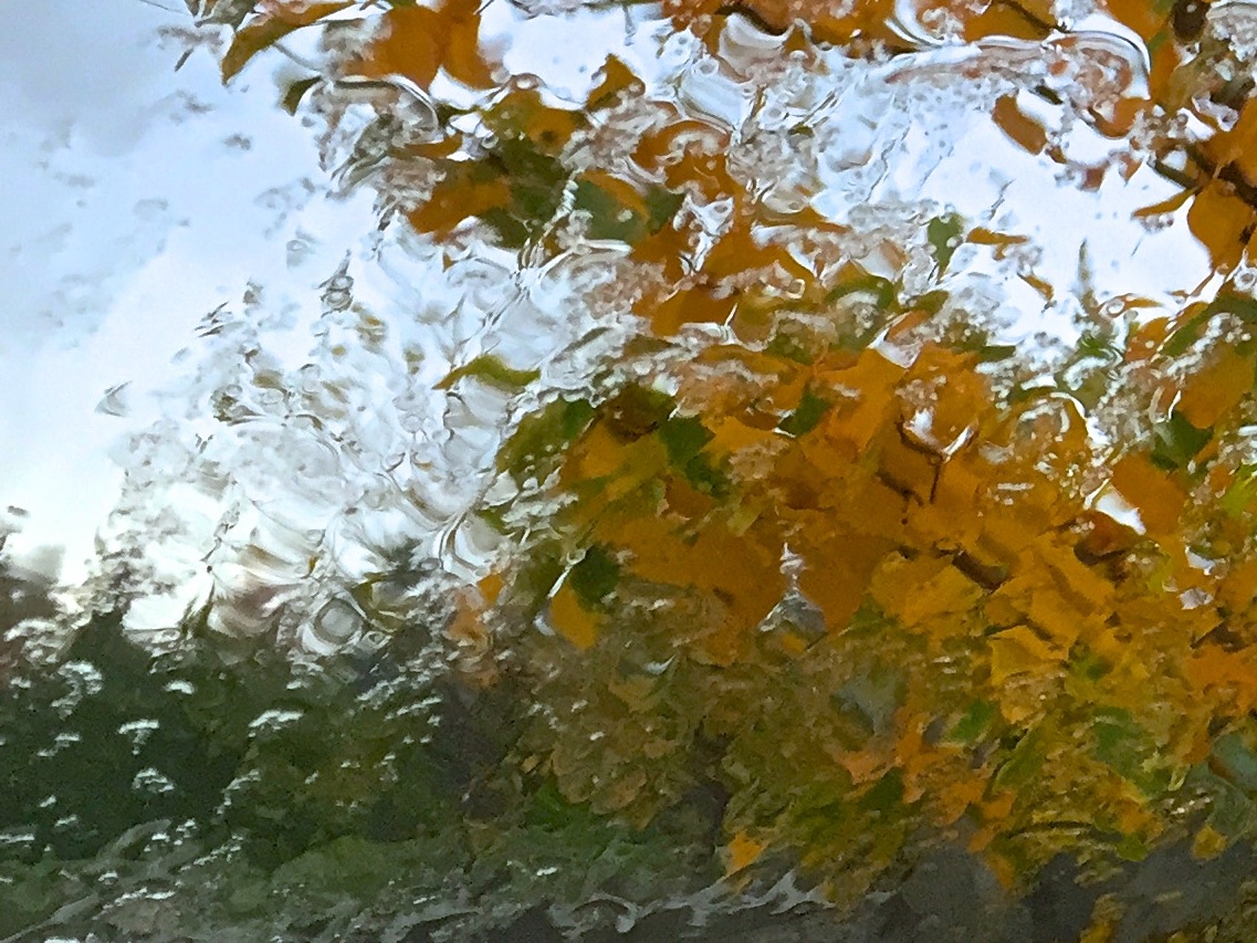 Happily for me, the rain happpened to fall most heavily while I was sitting parked in my car, facing some beautiful fall foliage. I always enjoy looking at the patterns formed by rain on the glass, and the view of the pretty fall colors did not disappoint.
