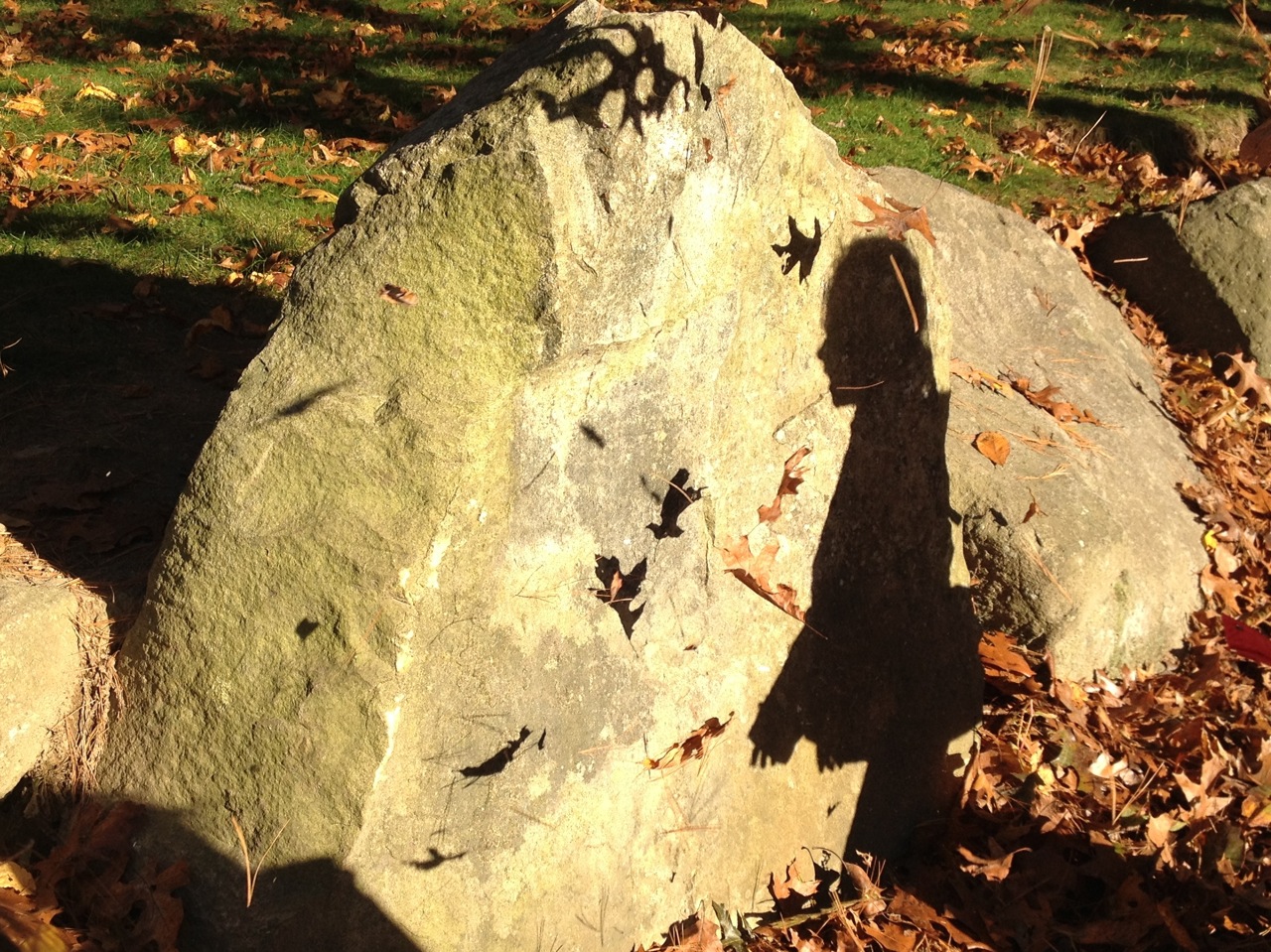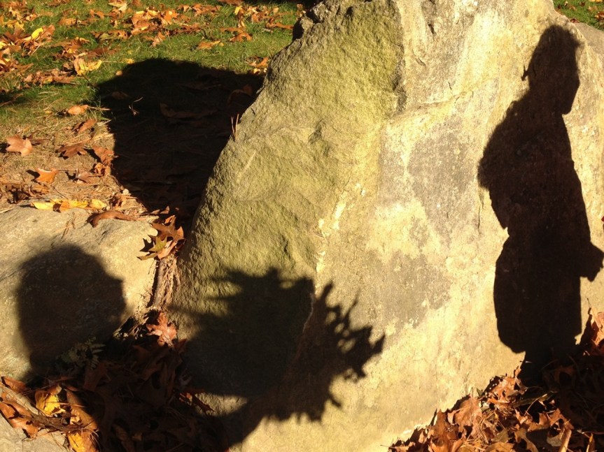 This is a series of photos I took during a visit to the zoo 2 years ago. The late afternoon sun was creating remarkably sharp shadows on this boulder, perfectly projecting the shadows of the kids and their friends as they playfully threw leaves at each other.