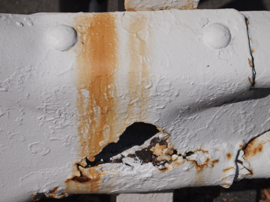 That door is alarmed, you say? Well, this guardrail is downright dismayed.