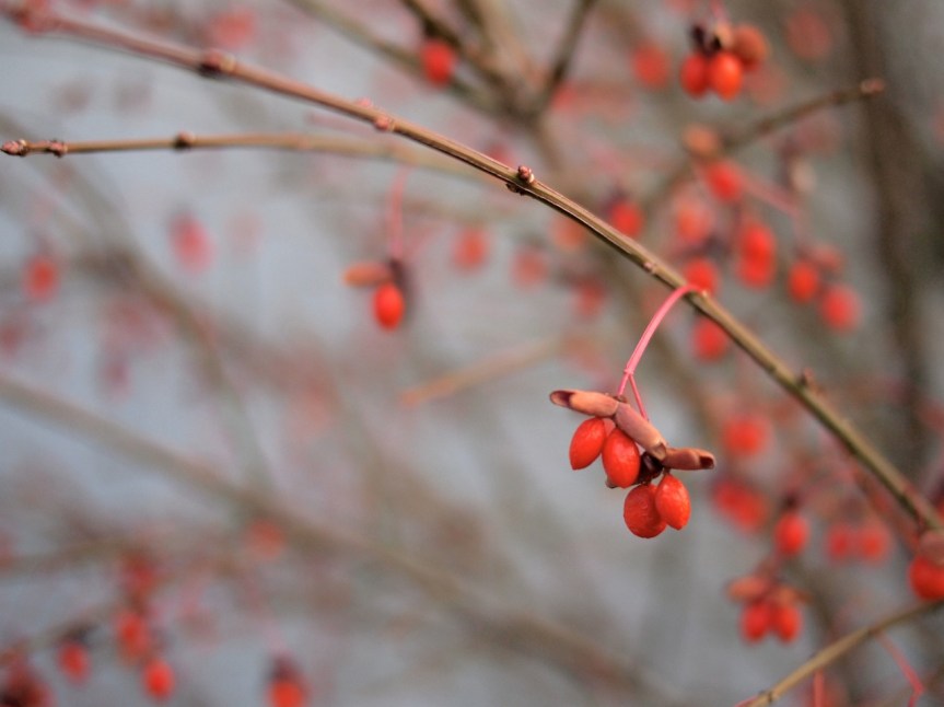 Here are three photos I’ve taken in past years of fruit-bearing trees and shrubs. The continued clinging of these fruits to their branches well into December and even into March suggests to me that no birds found these fruits to be palatable.