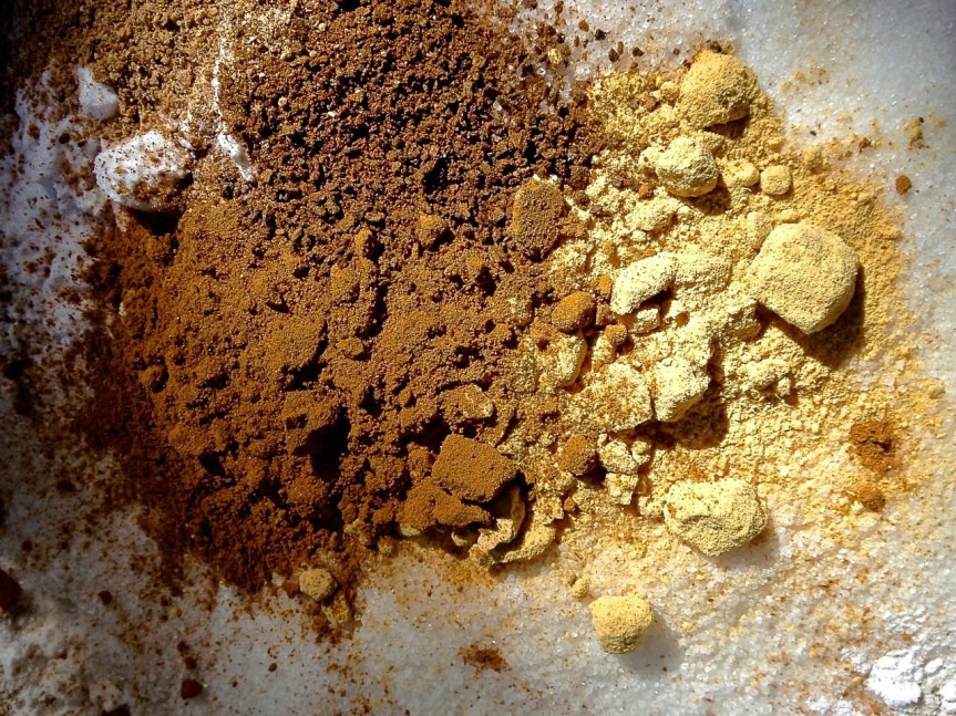 Here, the spices clumped up, looking like miniature boulders on a bed of sugar gravel.