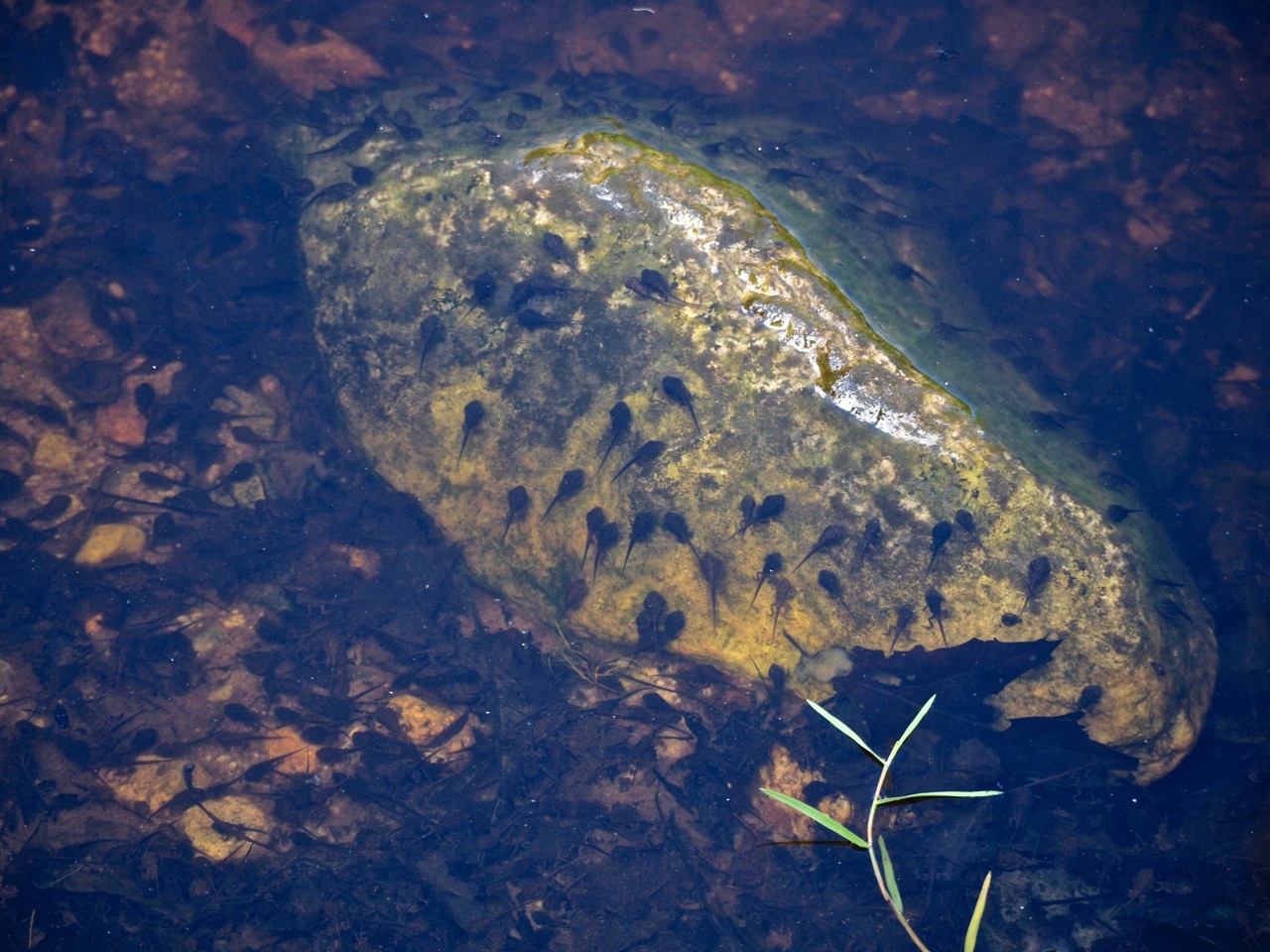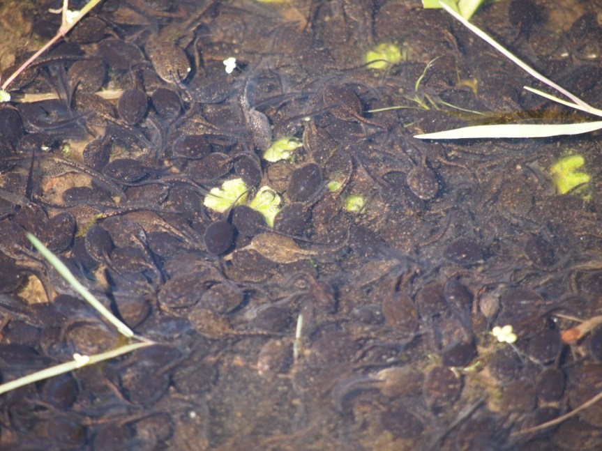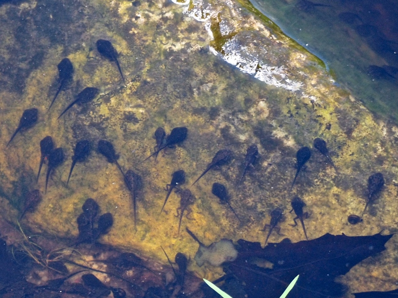 Sometimes the pond edges are positively teeming with tadpoles, lining it with dark blotches that can be many feet across.