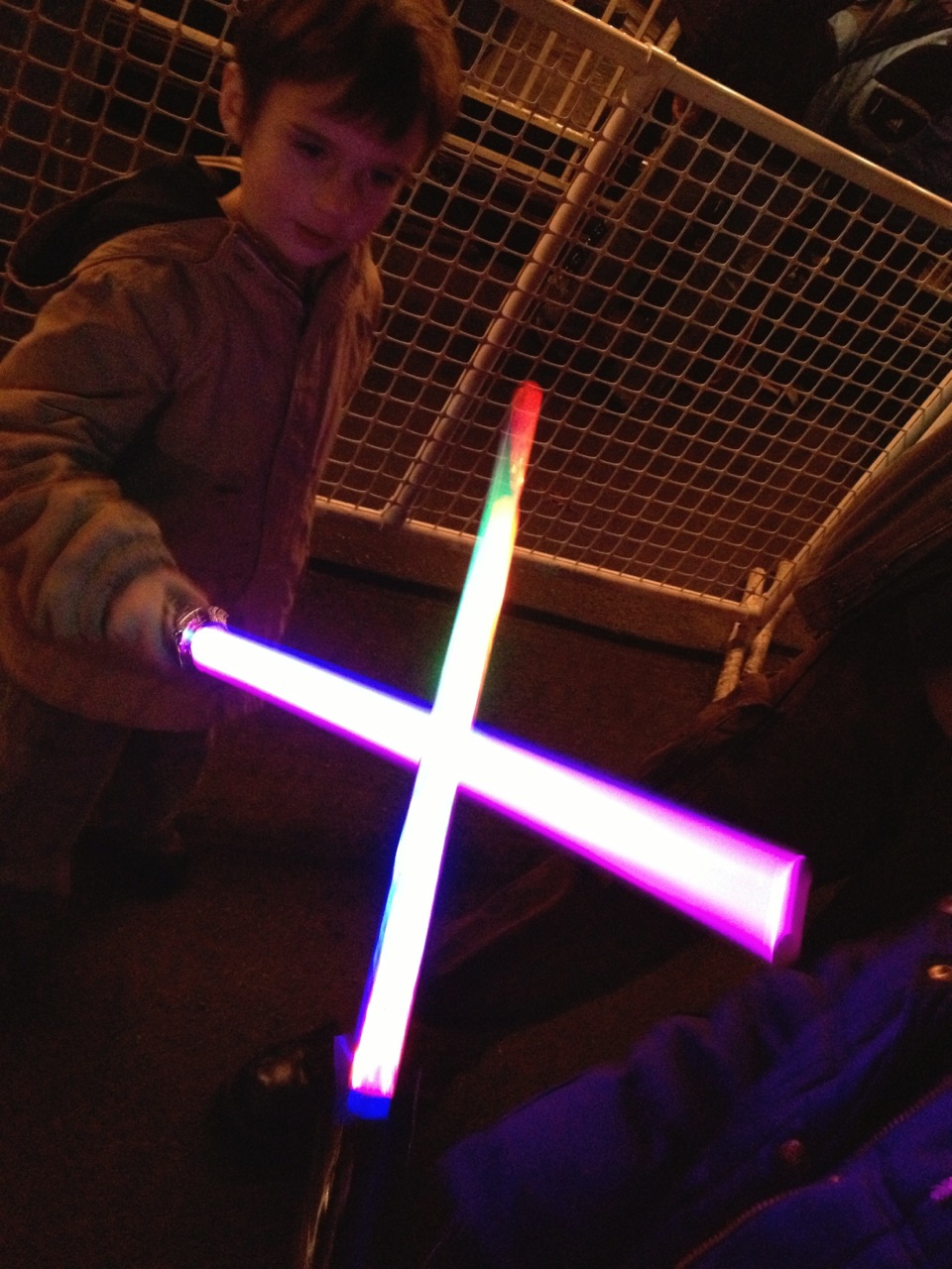 It amuses me that Star Wars Day has become a thing. (May the Fourth be with you.) In honor of this day of geekiness, it seems a good time to share these photos of the kid with lightsabers.