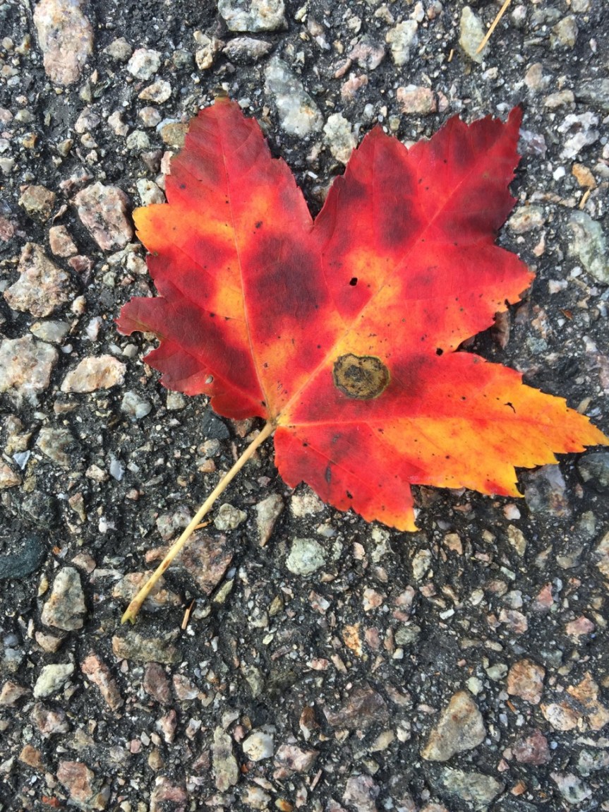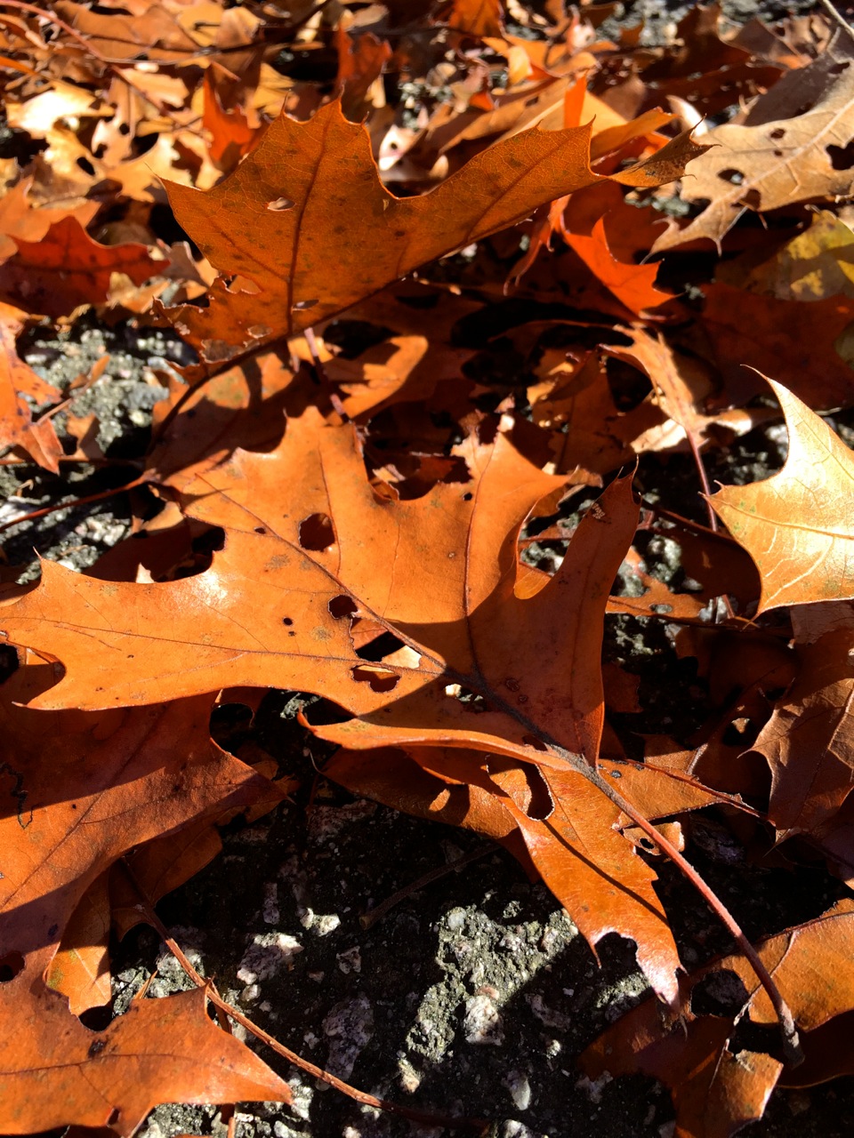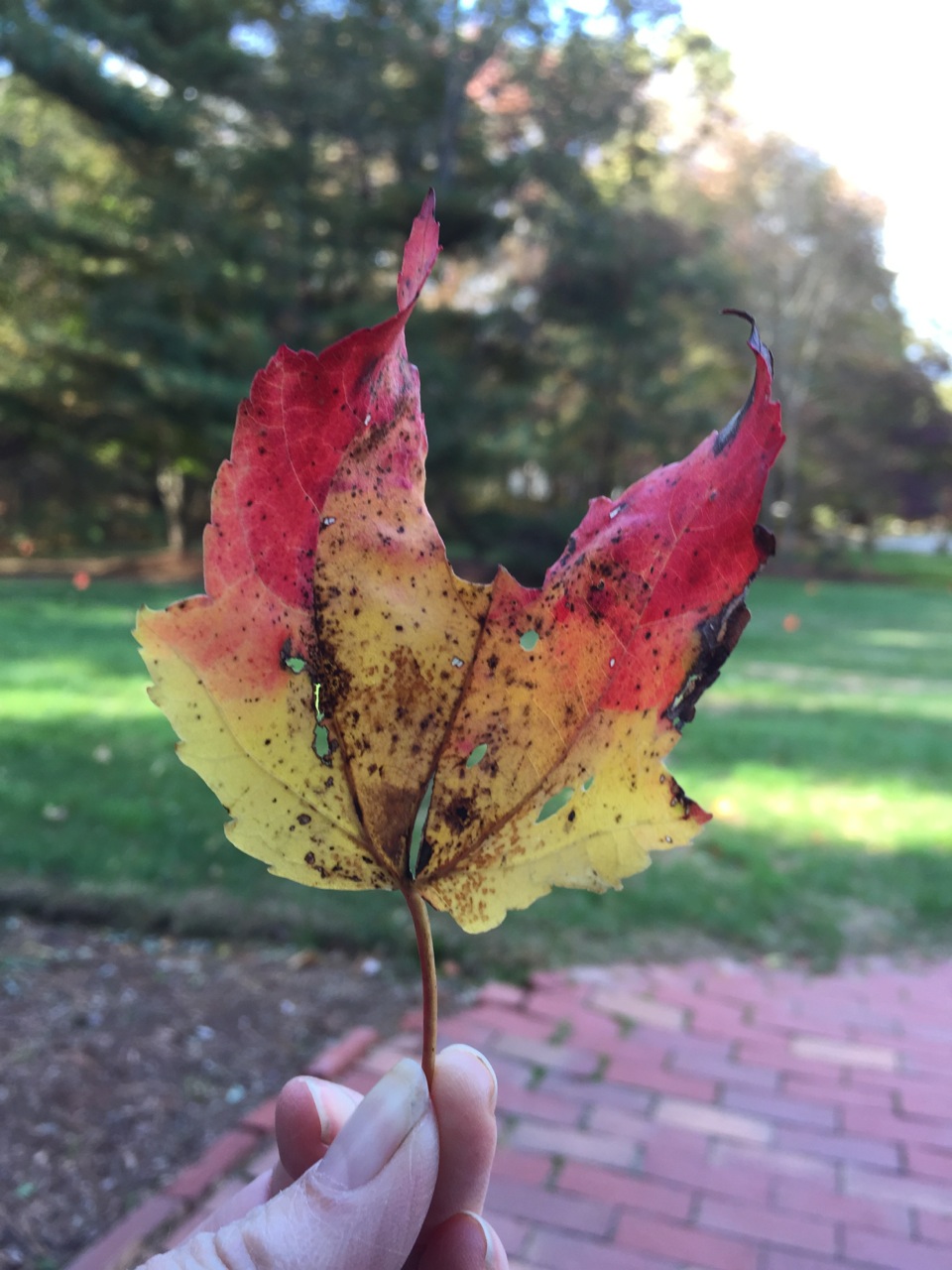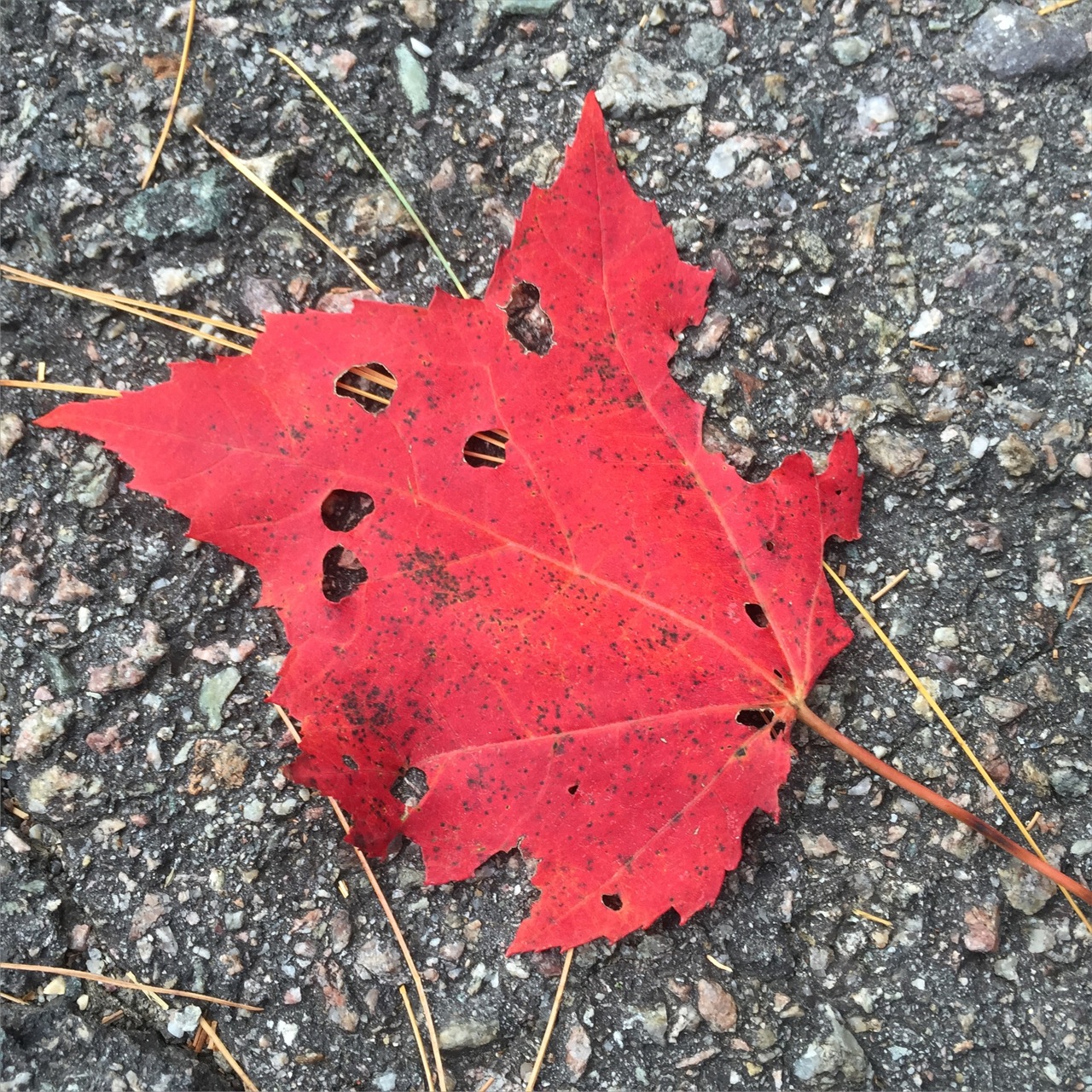 This was a bumper year for caterpillars, and hardly a tree could be seen whose leaves hadn’t been transformed into lacy mesh. (During the summer, when the caterpillar population was highest, word was that you could hear the sound of the munching up in the trees.) This years selection of fallen leaves, therefore, shows more than a hole or two. While perhaps not conventionally picture-perfect, these leaves are photogenic in their own offbeat way.