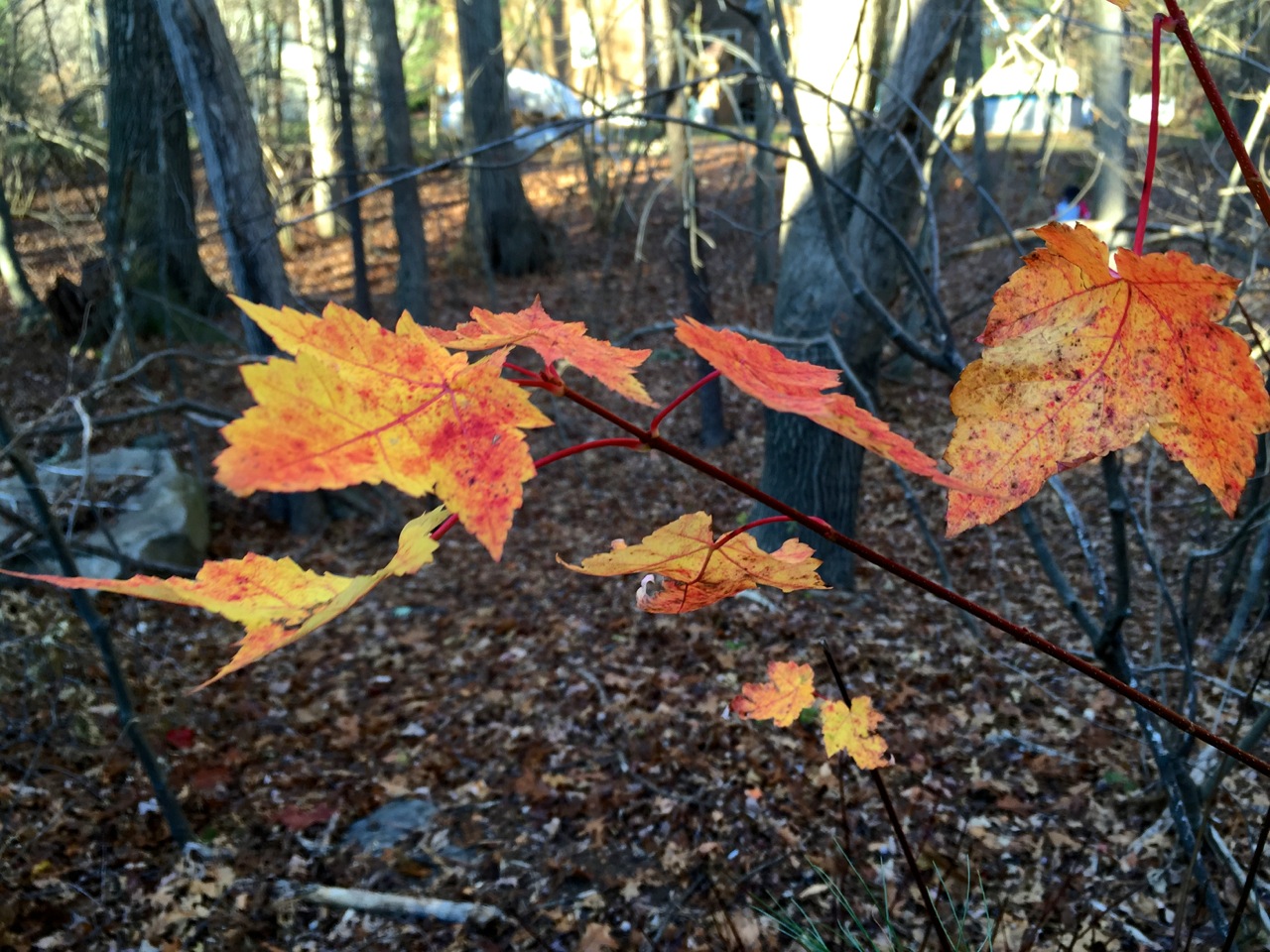 These are a few photos I took one afternoon last week while the kids played in the woods by our house. The riotous color of October foliage have given way to the muted browns and grays, with occasional splashes of bright leaves.
