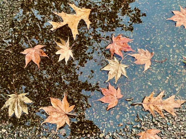 I did take a few photos today, mostly while out walking the dog. It was a very wet morning. I liked the way this assortment of leaves had arranged itself in this puddle.