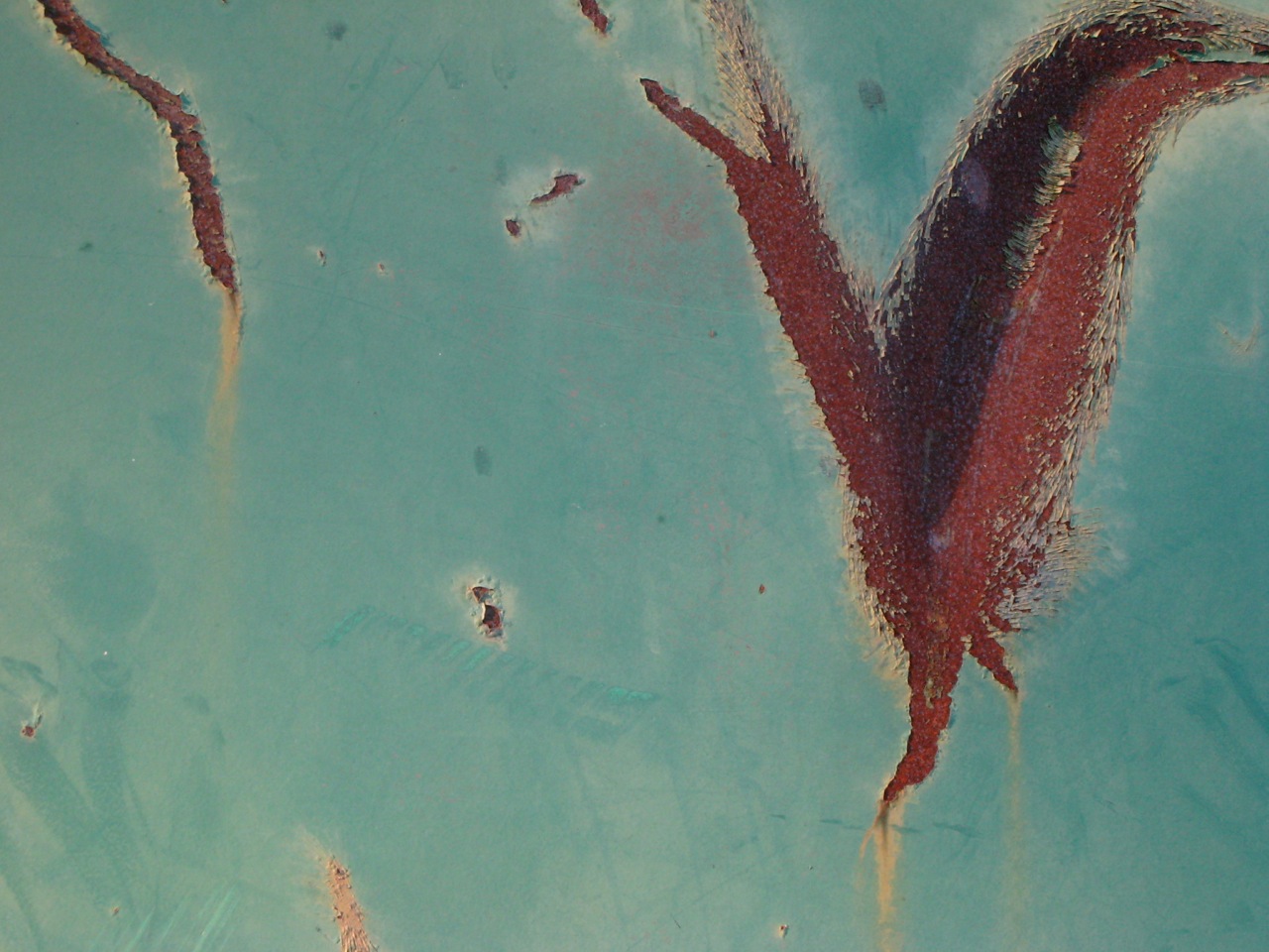 I’ve said before that I love the patterns produced by rust and weathered paint. The bold compositions produced by the elements working away at metal surfaces covered in their flimsy dressing of paint can rival those of some of the most venerated abstract expressionists. These canvases, however, are not so much the kind you find in museums, but rather on dumpsters, storage containers, parking lot barriers and such. Here are several examples of compositions of rust and weathered pain that caught my eye, several for producing patterns that were almost floral in appearance. (I realize that what these also look like are inkblots. What do you see in the pictures?)