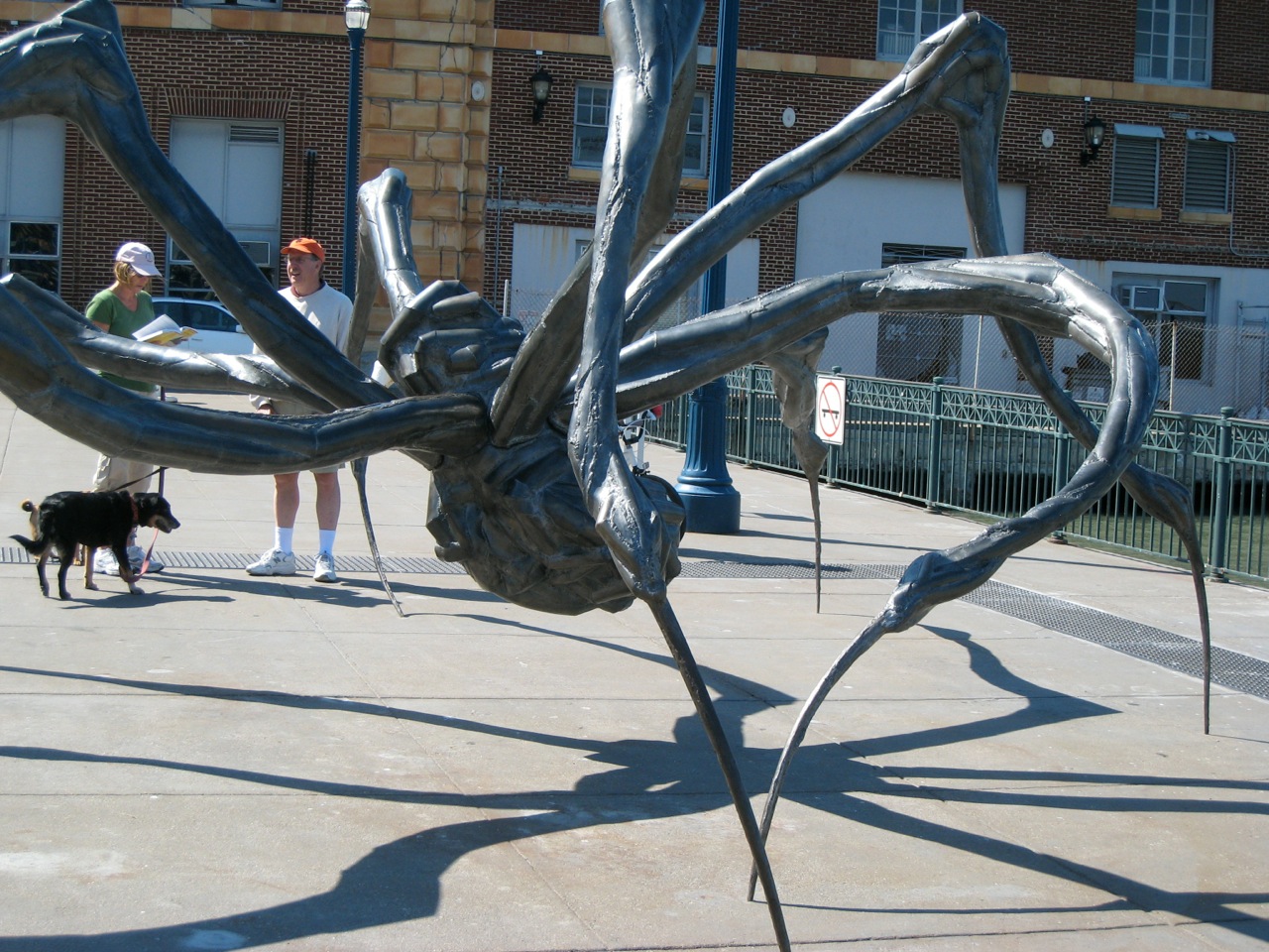 This week’s friday foto finder challenge was to find and share photos of spiders. I’ve got quite a few photos of real spiders in my library, as well as photos of their webs. I have posted photos of real spiders before, too. (One of my favorite posts with photos was about a little green spider.) Come to think of it, I also have a fairly large collection of things with a spider or web motif, thanks to my love of Halloween. (I did, in fact, put spiderweb placemats on my wedding registry.) When it came time to post, though, this spider scuplture came to mind. (Perhaps because I missed the statue fff a couple of weeks ago.)