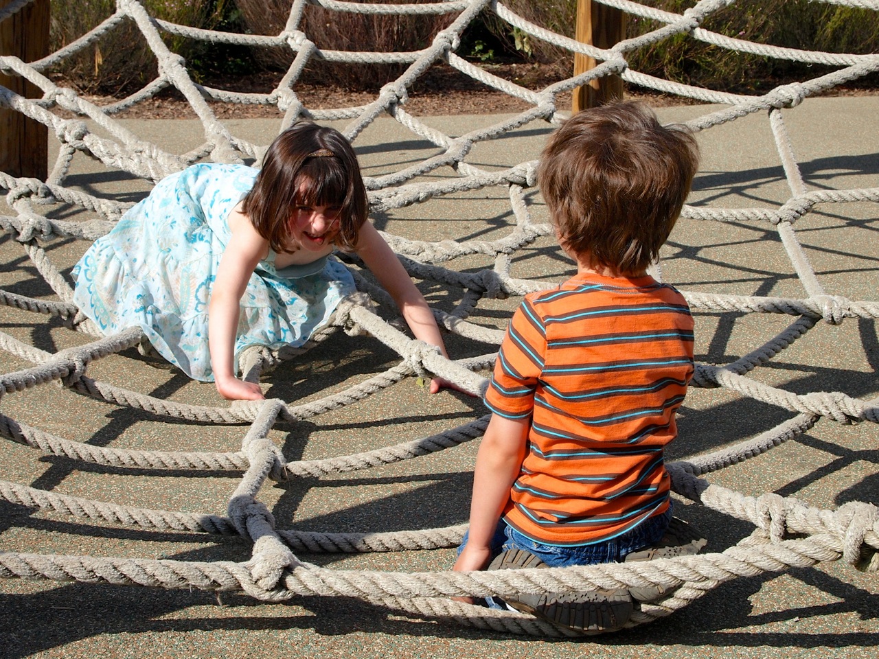 The spider sculpture may have left, but I believe that there may be other giant spiders in the greater San Francisco area. At the Oakland Zoo, for example, the playground has a super cool spider web made of ropes for kids to climb on. At least, I believe it to be made of ropes. It is just possible that it was made by a giant spider who was scared off by the swarms of small children.