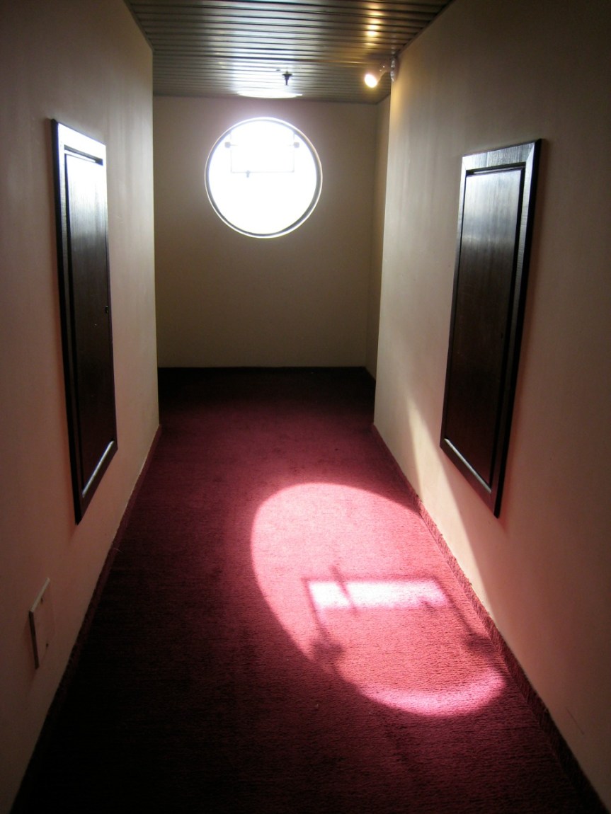 Campinas, Brazil, May, 2008. (Yes, this last one isn’t actually a sign. It’s the light shining through a circular window onto a red carpet in the hallway of the hotel where I was staying. The window is open slightly in the middle, which caused there to be a brighter bar of light in the circle of light. Try to tell me that this doesn’t look like a do not enter symbol.)