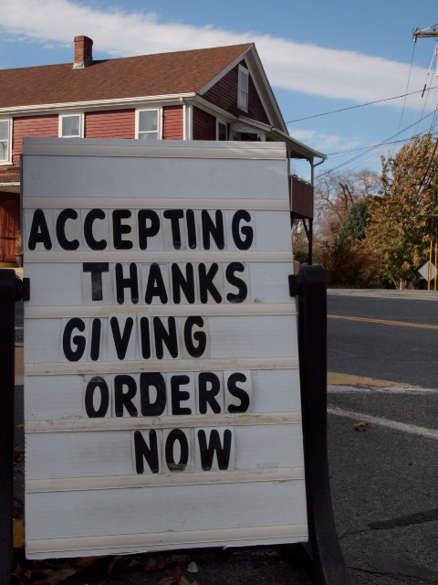 This was a sign outside a local catering/takeout business I came across a few weeks ago. It made my day. (And I swear I that this was the way I found it. No punctuation marks were stolen in the creation of this image.)