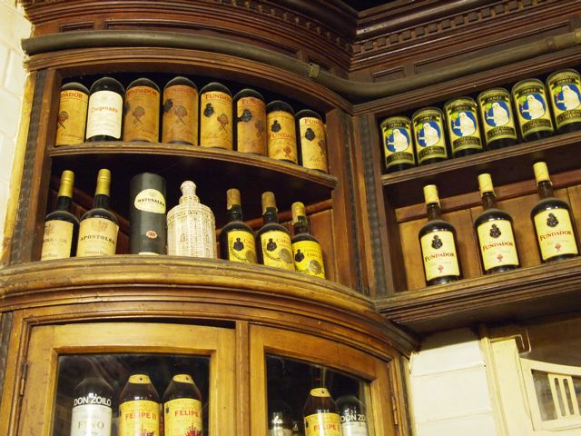 Three glasses of Manzanilla sherry being poured at El Riconcillo, the oldest bar in Sevilla.