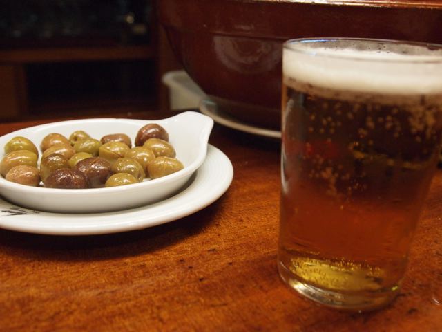Some olives and az’s beer, and a really big bowl of really big capers.