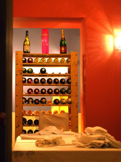 I liked the way this wine rack glowed, but felt a bit awkward about taking a picture of it while there were people sitting at the table in front of it. Happily, we stayed so late (enjoying the food and conversation) that we were the last ones there!