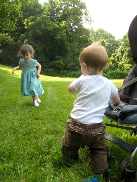 So there we were on the ground at Paris, CDG. And we gathered up our big piles of stuff and eventually got off the plane. There were quite a lot of other babies and small children on the flight, and it was funny to see that most of those other families were also slow getting off the plane. And we headed out of the plane, and expected to see our stroller, which we’d checked at the gate. It wasn’t there. Neither were any of the many other gate-checked strollers. We hung around for a bit, with the gathering small crowd of baby-toting people, until we finally got the news that all the strollers had all been sent to baggage claim, as everybody “had already left.” Everybody, I thought, except for all the people travelling with small children!