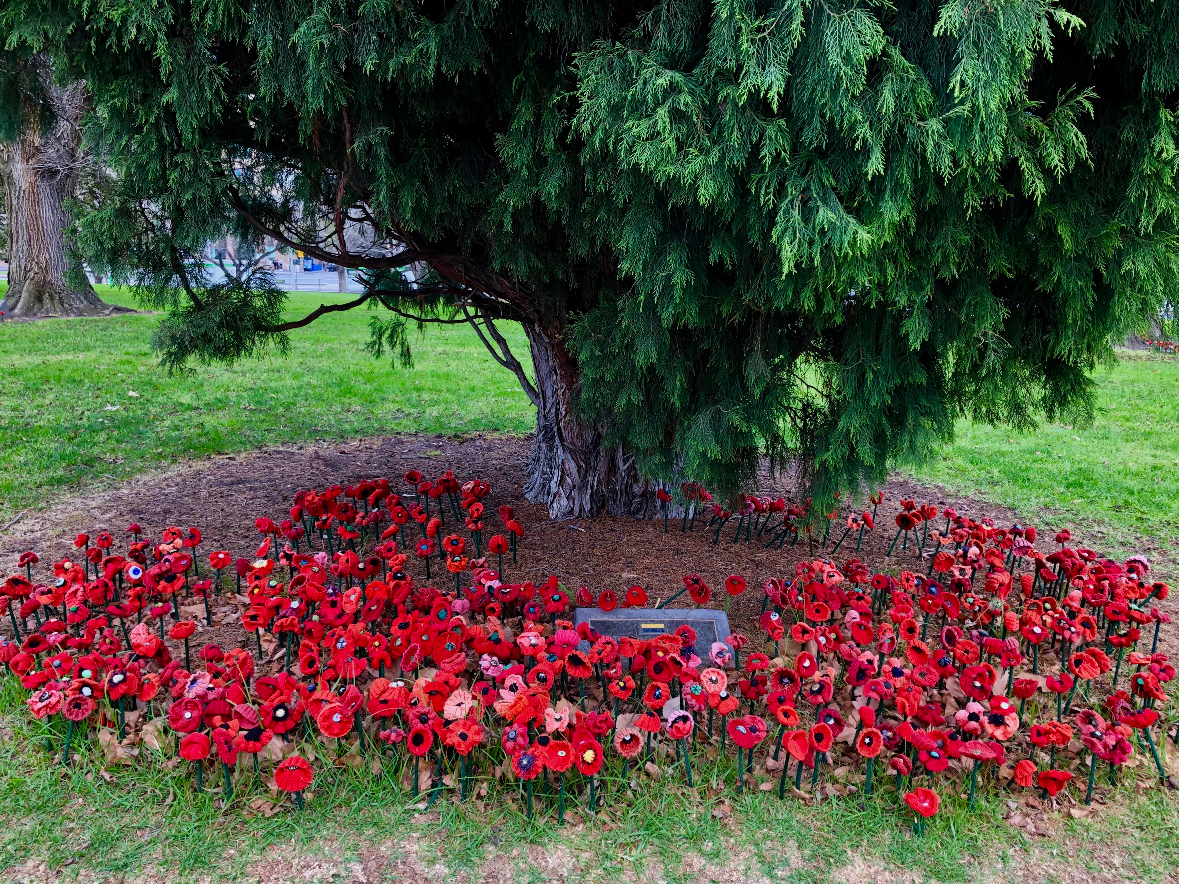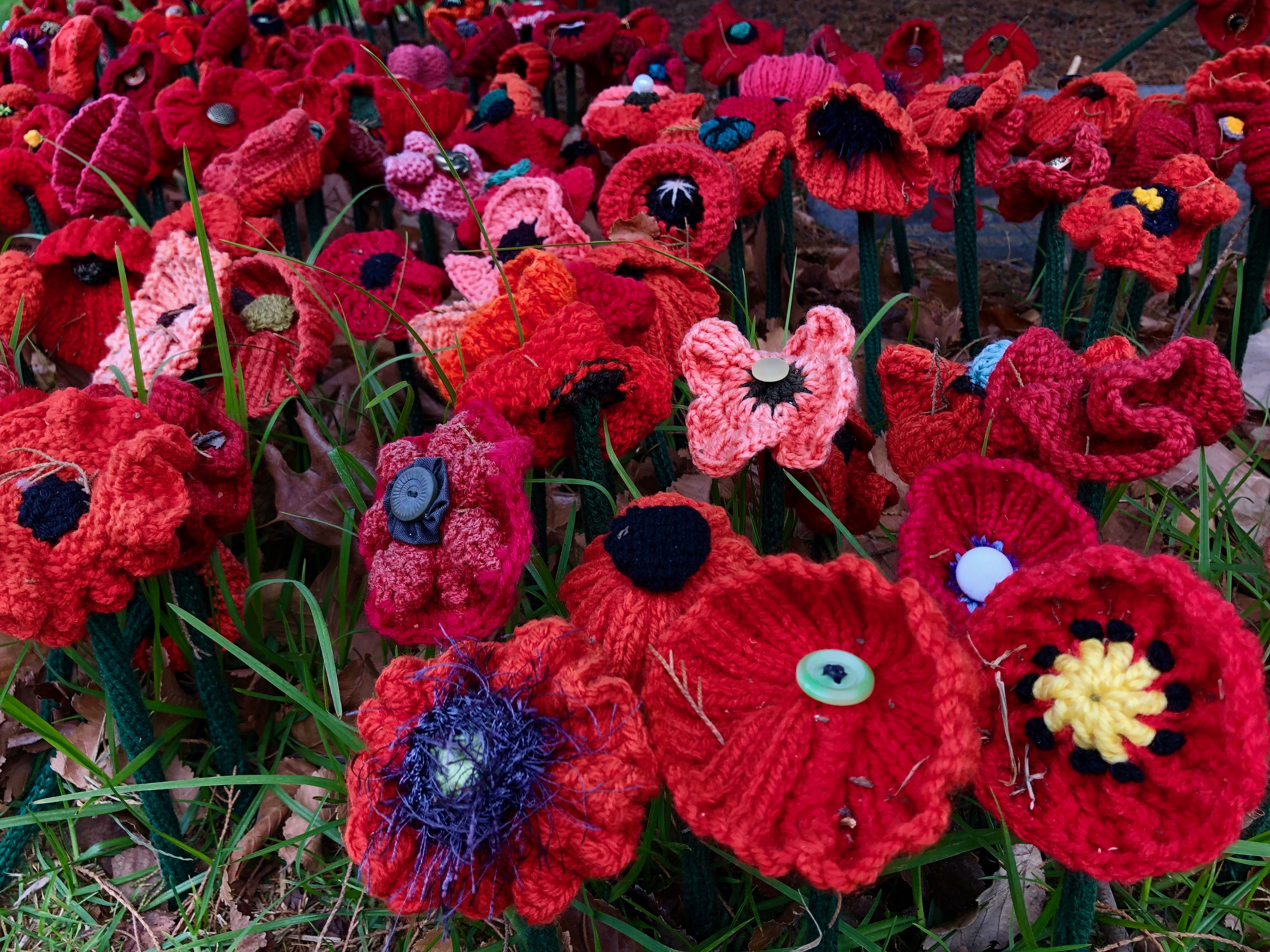 These particular poppies were knit and crocheted, many sporting buttons or beads. I’m not sure when these particular poppies were planted. I believe that they are likely part of the 5000 poppies project: