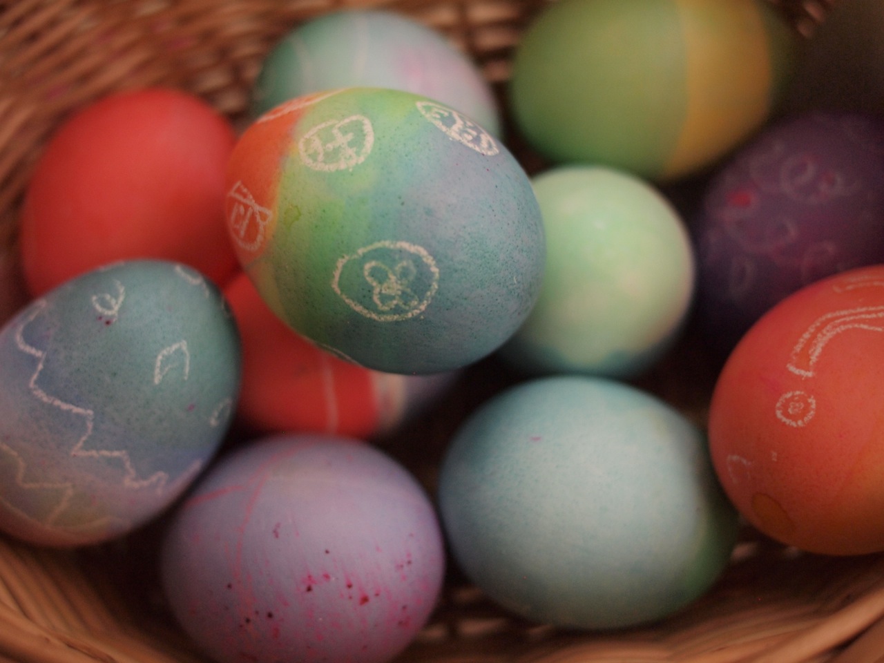 This year, I’m hoping to try the cabbage dye again, and also to experiment with beets, carrots, berries, and turmeric. I also may play around with acidity levels of the dye solutions again, as well as using brown eggs in addition to white. I wonder if pre-soaking an egg in vinegar would make it more permeable to dyes. (Did you know that you can dissolve the shell off an egg with vinegar? That’s another science experiment for us to do.)