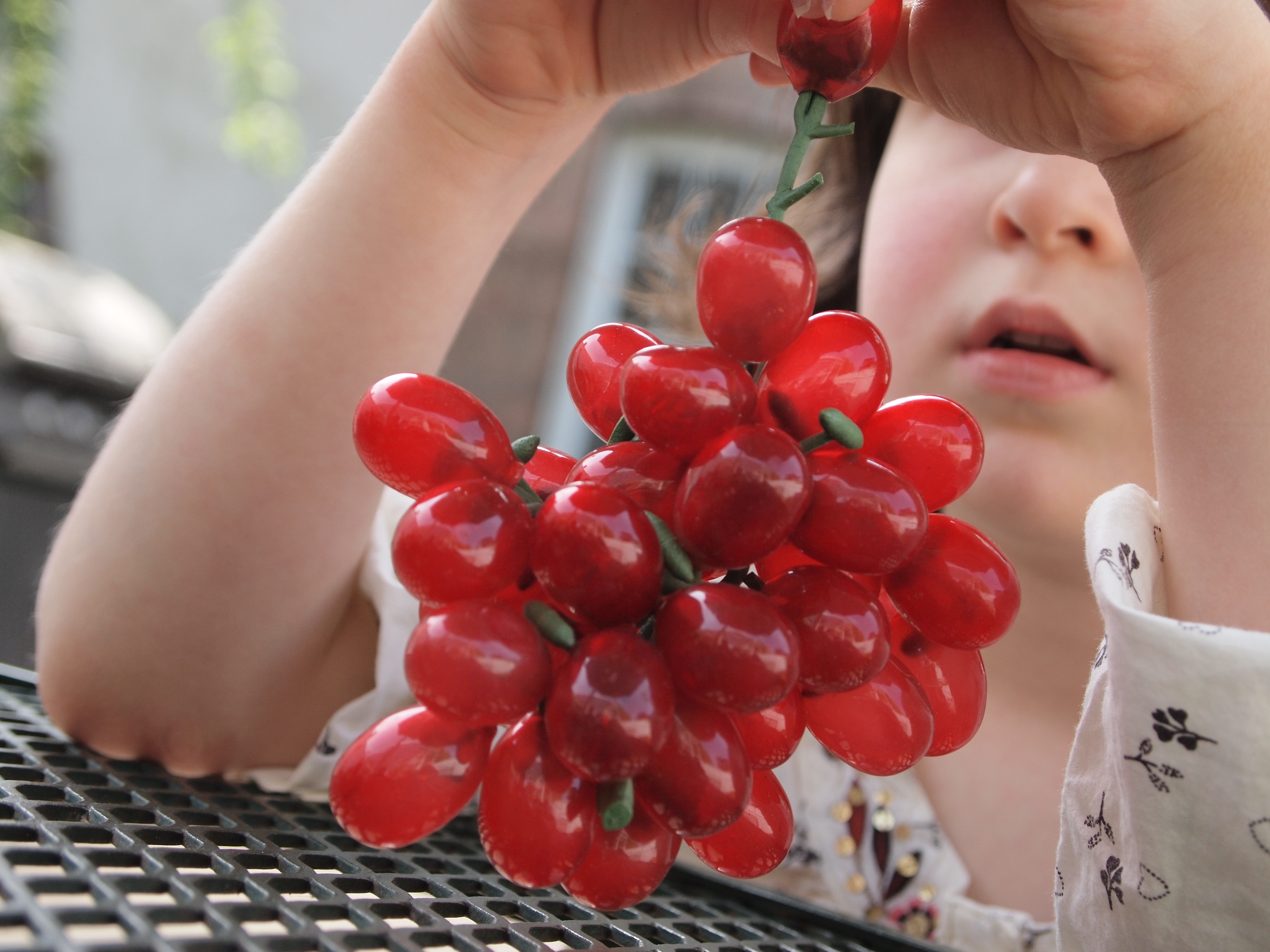 This week’s friday foto finder challenge was to share a photo on the theme of “fake.” It took some digging through my photo library, but this photo from 2011 caught my eye. This bunch of fake grapes adorned our table at a cafe where we had brunch once. In spite of my general lack of enthusiasm for plastic food used as decorations, I loved the way this bunch of fake grapes glowed in the sunlight, and caught so many reflections in its shiny surfaces.