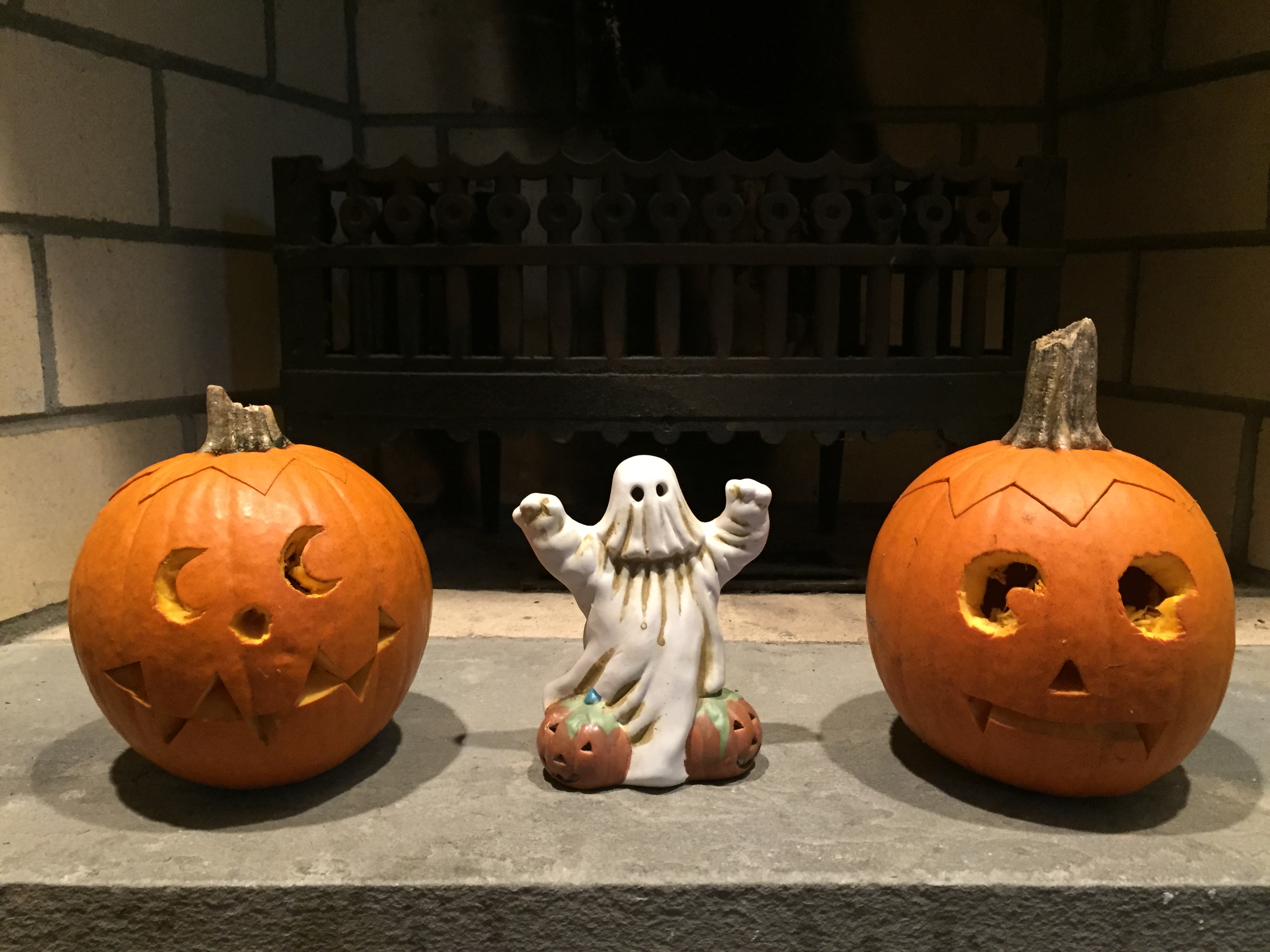 As I’ve said before, I love Halloween. It is quite possibly my favorite holiday. I wish I’d had time to post more Halloween-themed things, but so be it. But here, at least, are a few photos featuring our pumpkins. (Carving pumpkins early in the evening on Halloween seems to have become a household tradition. )