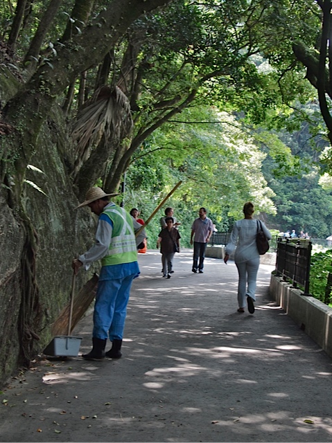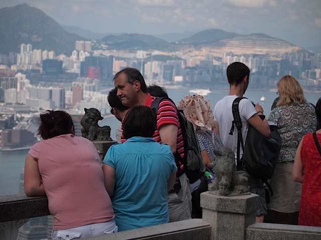 We couldn’t hear any of the music to which the spectacle was allegedly synchronized. In general, there were lots of colorful and some flashing lights on the buildings along the waterfront. For a short time, there was a marginal increase in the flashing and the colorfulness. It was as hard to tell when the show had stopped as it had been to tell when it had begun. Gradually, the crowd thinned.