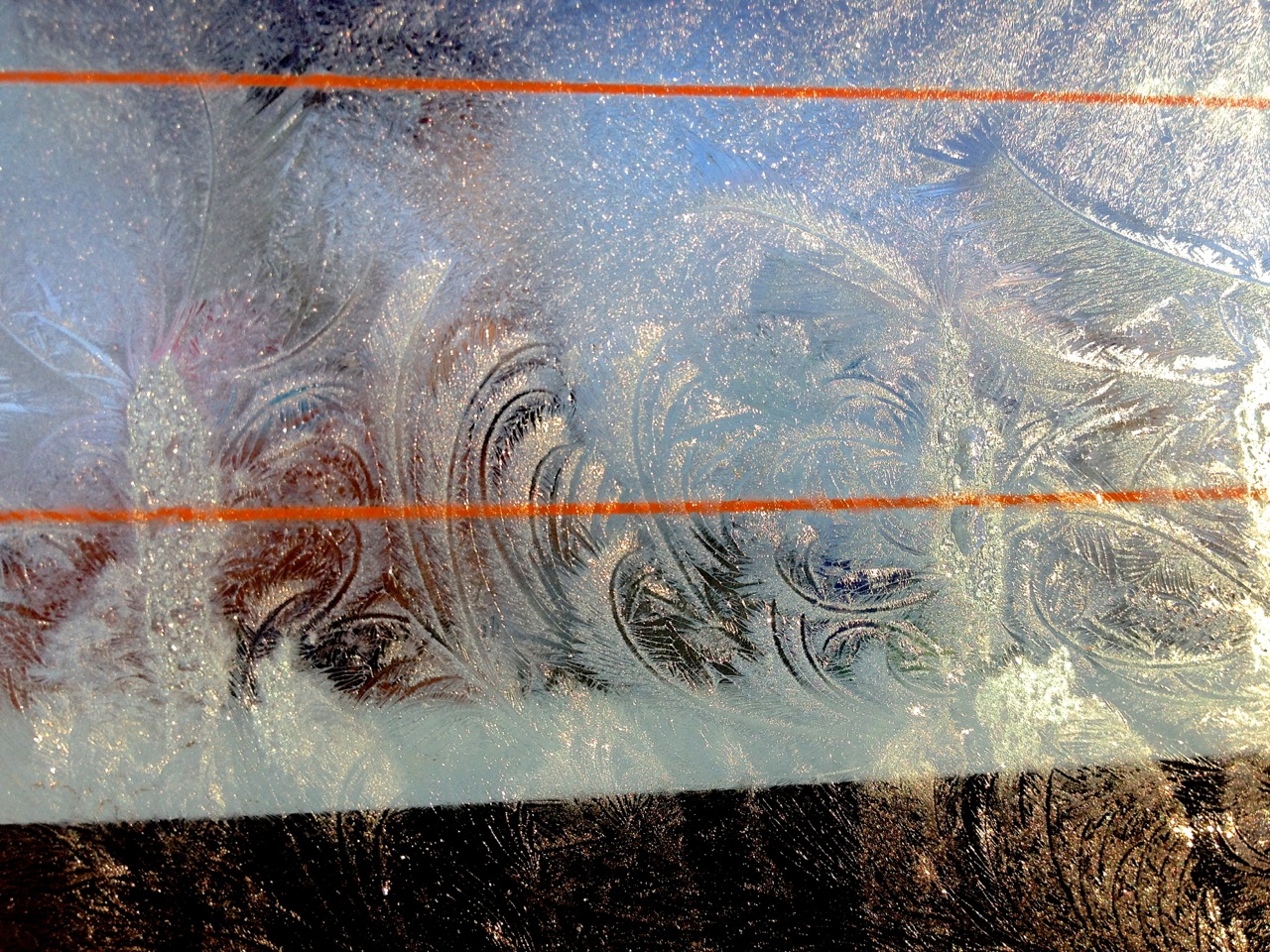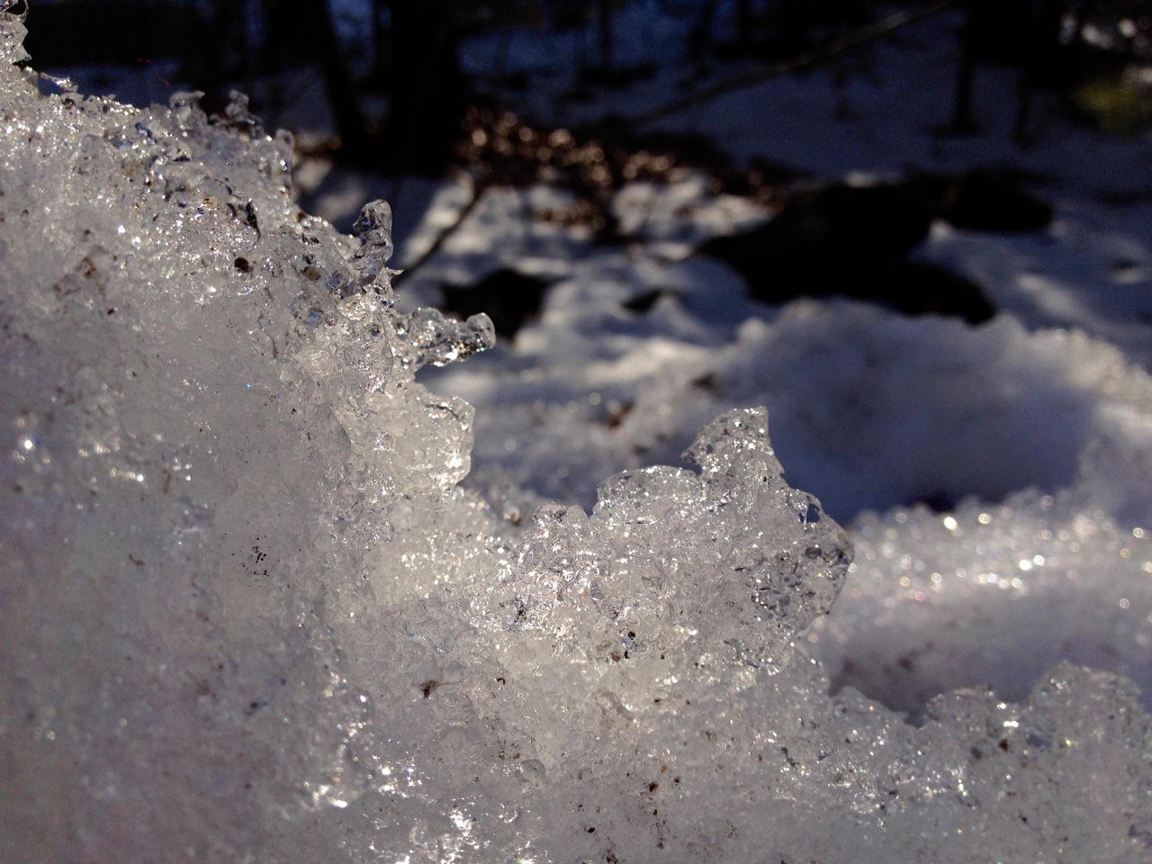 The low rays lit up the ice and water drops all around.