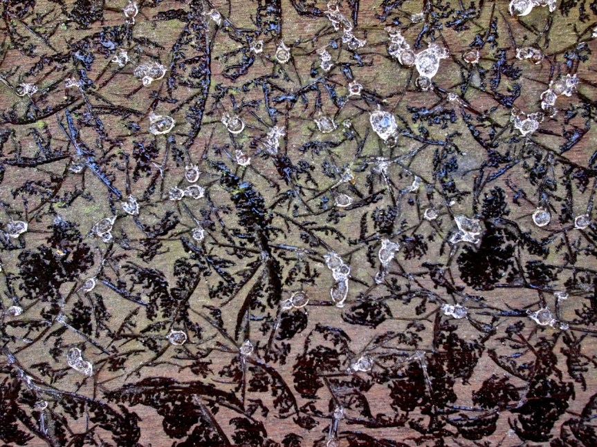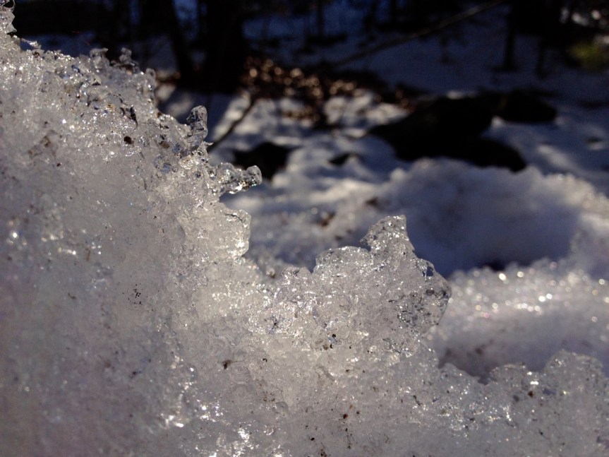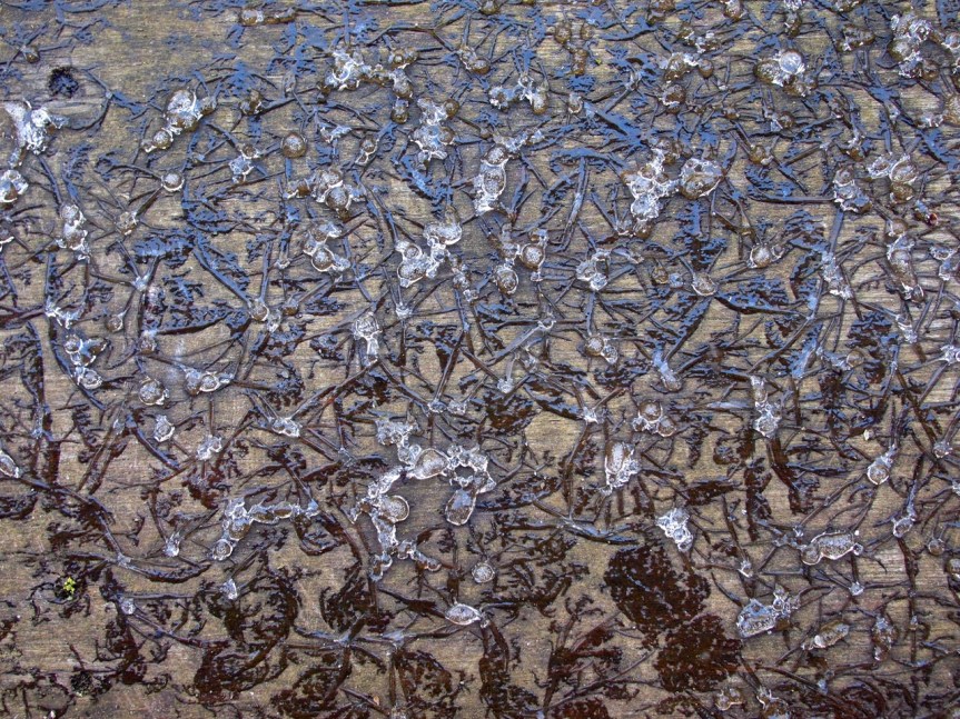 Even with the good camera and good lens, focusing was a challenge. These little beauties were only a couple of centimeters across, with the ice drops probably measuring 6 or 8 millimeters. (I find it funny that the jewelry-like shape of these forms inspires me to use the metric system. When I buy beads, they are always measured in millimeters.)
